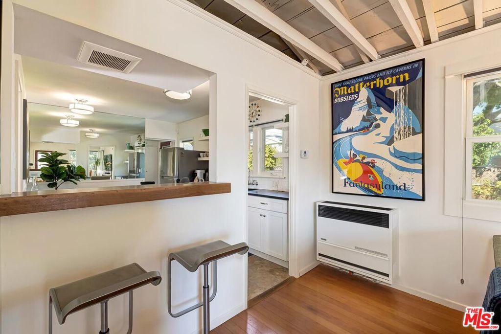 Ocean Park Gem. Step into timeless charm with this classic 1920s Santa Monica bungalow, beautifully updated to blend vintage charm with modern convenience. Inside, you'll find a warm, inviting space with an exposed-beam ceiling that adds a beachy vibe and character. The open-concept living room and kitchen create a seamless flow, perfect for entertaining or simply relaxing at home. Modern comforts like mini-splits for heating and cooling, a washer and dryer, and an EV charger make this a full oasis. Come back from a sunny day at the beach and enjoy sipping a beverage from the iconic neighborhood bodega, Marine Market, right across the street. Step outside, and the magic continues. The grassy backyard, accented with gravel and pavers, offers a serene retreat, while the expansive side yard is ideal for al fresco dining under the California skies. The property is a larger-than-typical corner lot that allows in more light and gives a feeling of serenity. As a bonus, the spacious detached garage opens up endless possibilities; it could become your dream art studio, a home gym, an ADU, or whatever suits your lifestyle. This home is perfectly situated in the heart of Ocean Park, just moments from the vibrant shops and restaurants, Main Street, Starbucks down the block, and Whole Foods and Santa Monica beaches are moments away. This home is a special sanctuary. We will see you there!