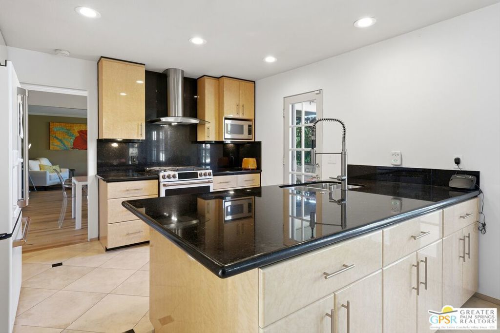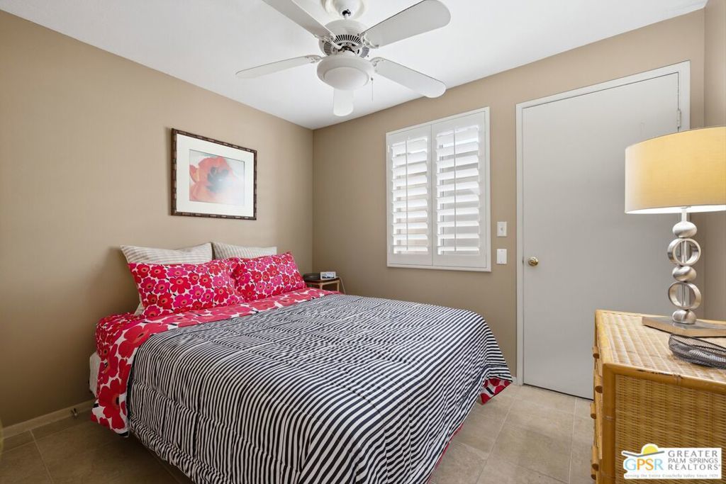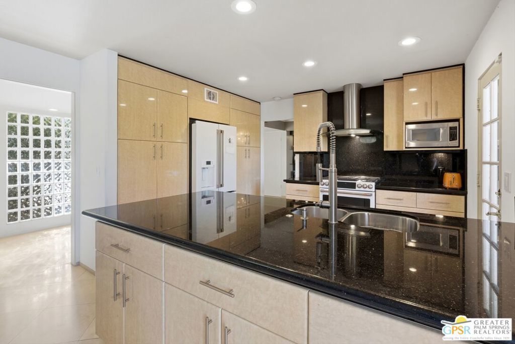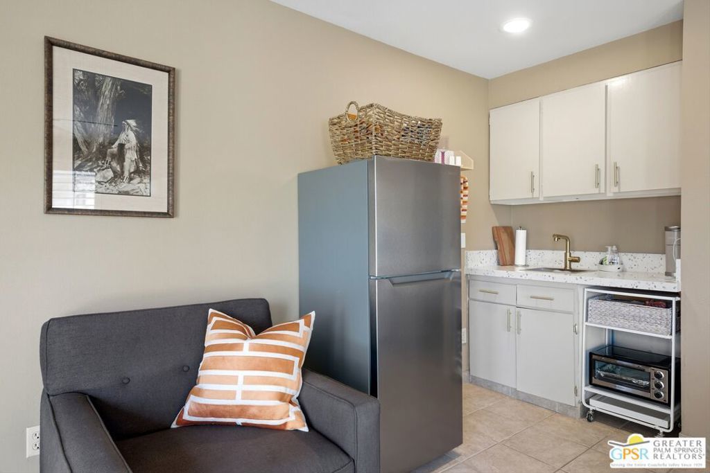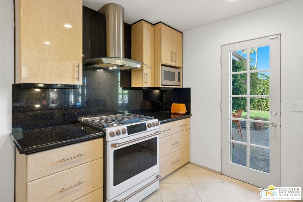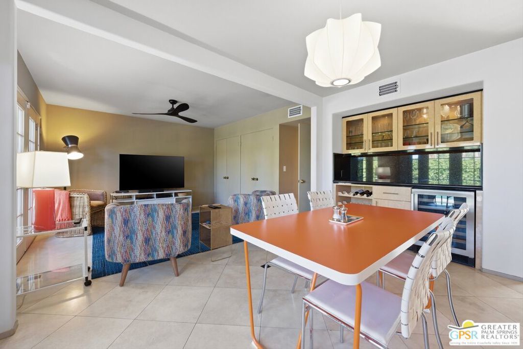 Priced appropriately as a traditional sale, welcome to 74860 Fairway Drivean exceptional opportunity to own a true Mid-Century Modern gem in the heart of South Palm Desert.Arrive in style via the circular driveway, setting the tone for gracious desert living and effortless entertaining. Offering 2,357 square feet of thoughtfully updated living space, this iconic residence blends timeless architecture with refined modern upgrades. The home features three bedrooms and three bathrooms, along with a versatile floor plan that includes a private-entry casitaperfect for guests, a home office, or a secluded retreat.Inside, architectural elegance is showcased through travertine and engineered hardwood flooring, custom built-ins, sleek European-style cabinetry, and quartz countertops throughout the kitchen and baths. The chef's kitchen is appointed with premium appliances, while the spacious primary suite offers a spa-inspired experience with a seamless walk-in shower and dual vanities.Step outside to a truly inviting backyard designed for both relaxation and entertaining. Enjoy stamped concrete hardscaping, a saltwater Pebble Tec pool, built-in BBQ station, and a covered patioall framed by breathtaking south and west-facing mountain views that deliver unforgettable desert sunsets.Extensively updated for comfort and peace of mind, the home includes owned solar, a brand-new roof (November 2025), new HVAC system, tankless water heater, Ring doorbell, and numerous additional enhancements. The garage also features a dedicated golf cart area with convenient charging access.Ideally located just moments from El Paseo Shopping District, The Living Desert Zoo and Gardens, and world-class golf coursesall with no HOAthis property offers the perfect blend of location, lifestyle, and design.A rare offering that seamlessly captures the spirit of 1964 Mid-Century charm while delivering today's most desirable modern amenities.Permitted casita: 442 sq. ft. | Main house: 1,915 sq. ft. (assessor) | Total: 2,357 sq. ft. (not reflected on title profile)
