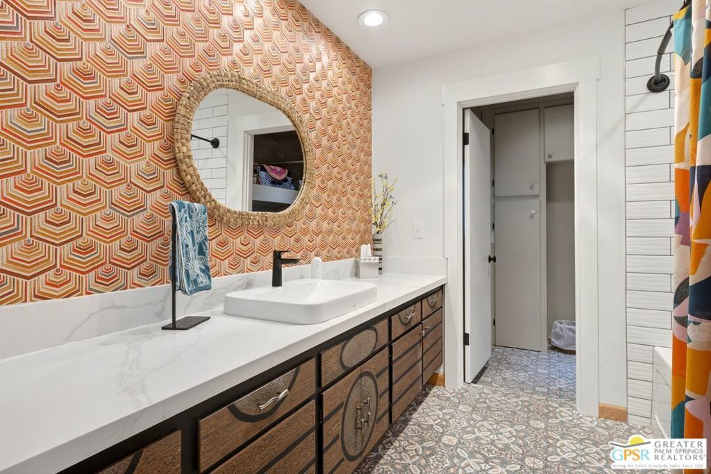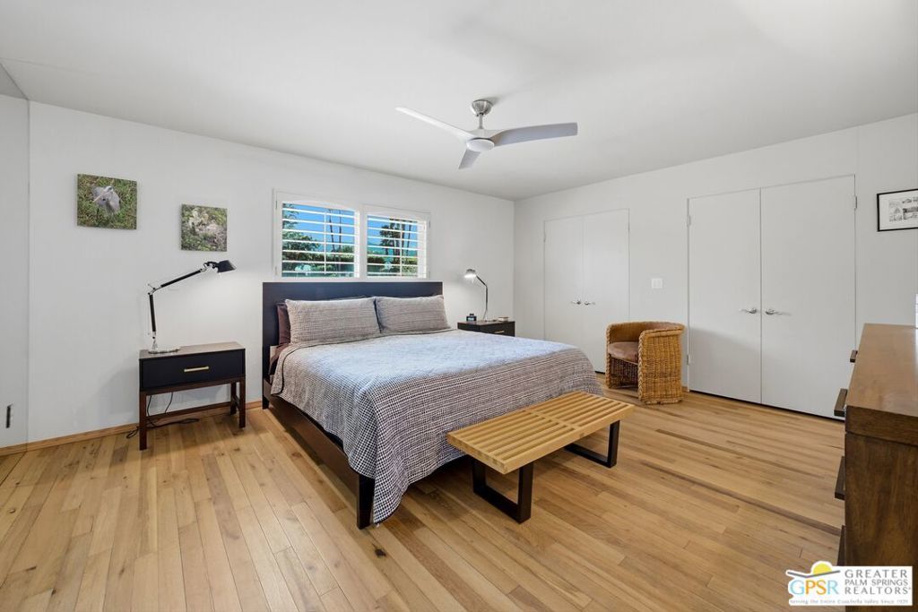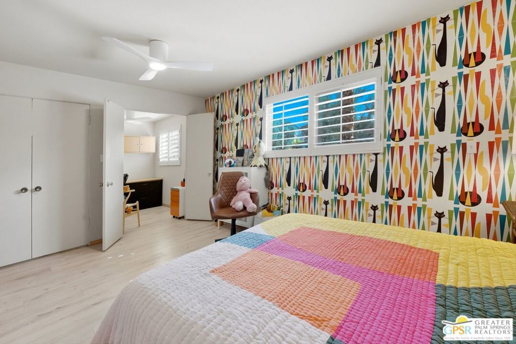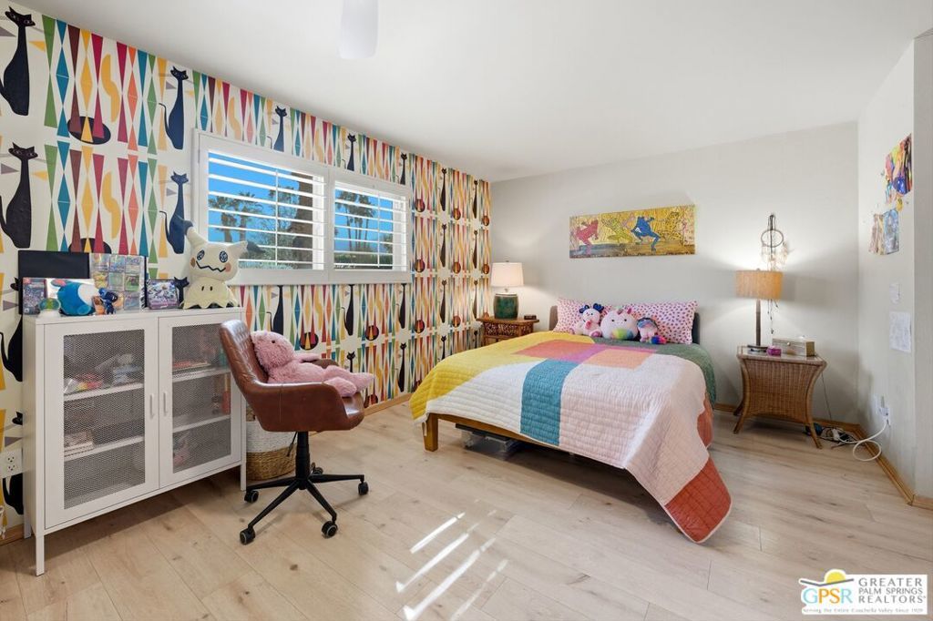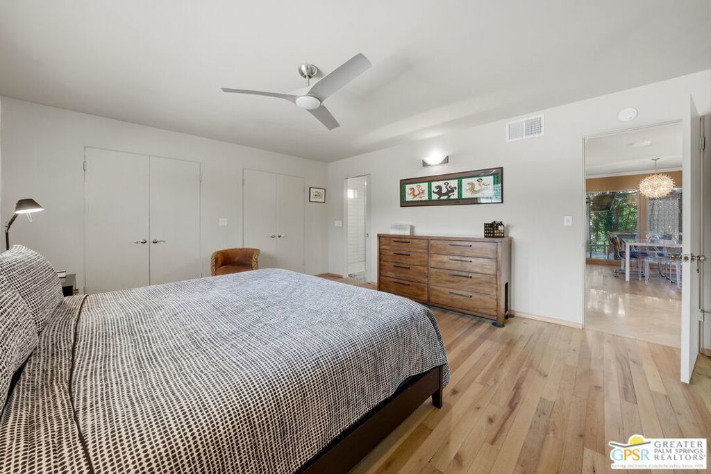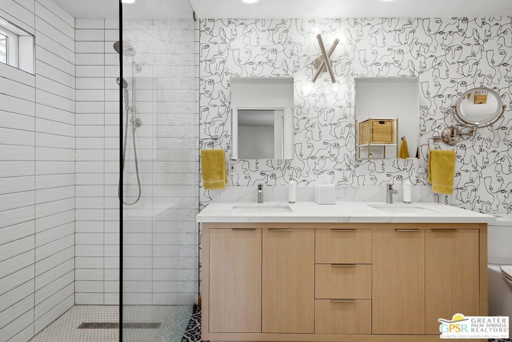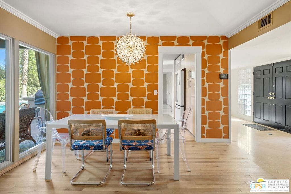 Priced appropriately as a traditional sale, welcome to 74860 Fairway Drivean exceptional opportunity to own a true Mid-Century Modern gem in the heart of South Palm Desert.Arrive in style via the circular driveway, setting the tone for gracious desert living and effortless entertaining. Offering 2,357 square feet of thoughtfully updated living space, this iconic residence blends timeless architecture with refined modern upgrades. The home features three bedrooms and three bathrooms, along with a versatile floor plan that includes a private-entry casitaperfect for guests, a home office, or a secluded retreat.Inside, architectural elegance is showcased through travertine and engineered hardwood flooring, custom built-ins, sleek European-style cabinetry, and quartz countertops throughout the kitchen and baths. The chef's kitchen is appointed with premium appliances, while the spacious primary suite offers a spa-inspired experience with a seamless walk-in shower and dual vanities.Step outside to a truly inviting backyard designed for both relaxation and entertaining. Enjoy stamped concrete hardscaping, a saltwater Pebble Tec pool, built-in BBQ station, and a covered patioall framed by breathtaking south and west-facing mountain views that deliver unforgettable desert sunsets.Extensively updated for comfort and peace of mind, the home includes owned solar, a brand-new roof (November 2025), new HVAC system, tankless water heater, Ring doorbell, and numerous additional enhancements. The garage also features a dedicated golf cart area with convenient charging access.Ideally located just moments from El Paseo Shopping District, The Living Desert Zoo and Gardens, and world-class golf coursesall with no HOAthis property offers the perfect blend of location, lifestyle, and design.A rare offering that seamlessly captures the spirit of 1964 Mid-Century charm while delivering today's most desirable modern amenities.Permitted casita: 442 sq. ft. | Main house: 1,915 sq. ft. (assessor) | Total: 2,357 sq. ft. (not reflected on title profile)