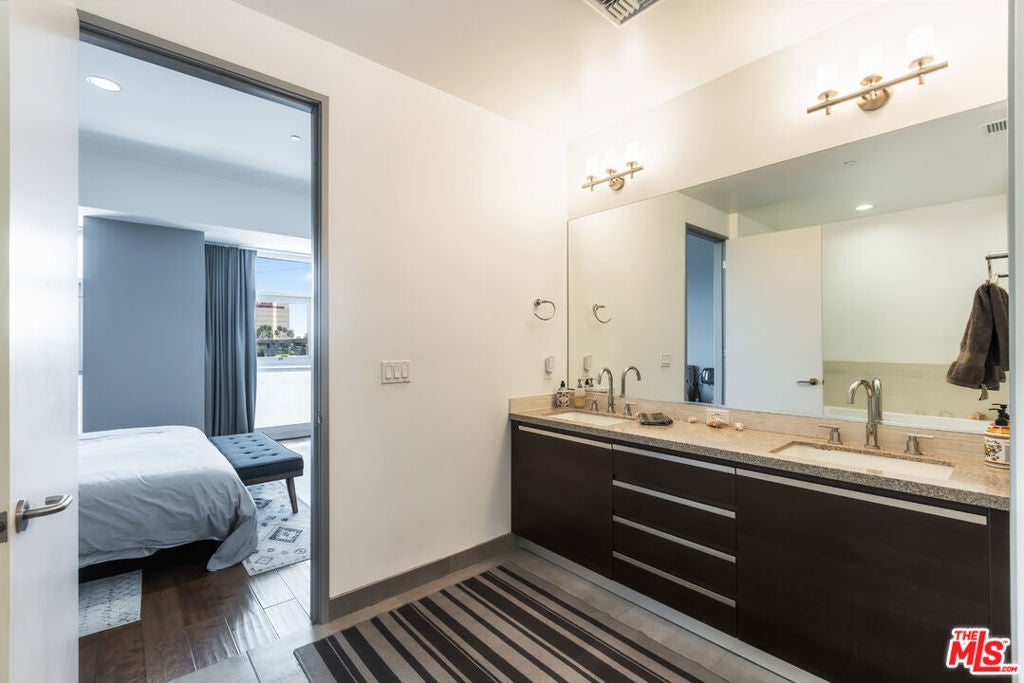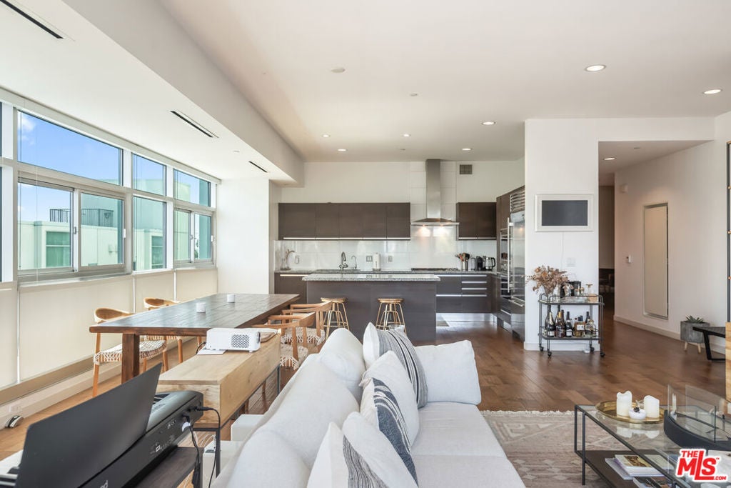 Rare southeast corner residence in the coveted Latitude 33 Sky Collection offering elevated coastal living in the heart of Silicon Beach. Floor-to-ceiling windows showcase city and mountain views with abundant natural light throughout the open-concept layout. Designer finishes include hardwood plank floors and a chef's kitchen with Sub-Zero & Wolf appliances, double ovens, wine fridge, and large island. Two private ensuite bedrooms plus a spacious den that can easily serve as a third bedroom or office. Primary suite features a spa-inspired bath and oversized walk-in closet. The residence also includes two parking spaces with an EV charger. Full-service building with concierge, 24-hour security, and fitness center. Moments from Venice Canals, Abbot Kinney, Marina del Rey, and the beach