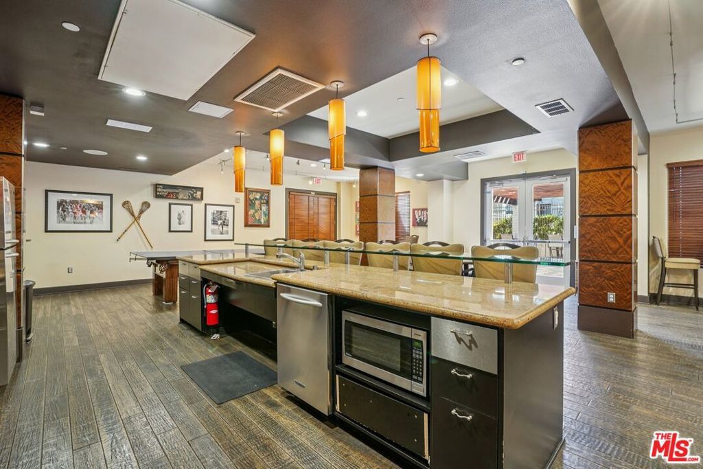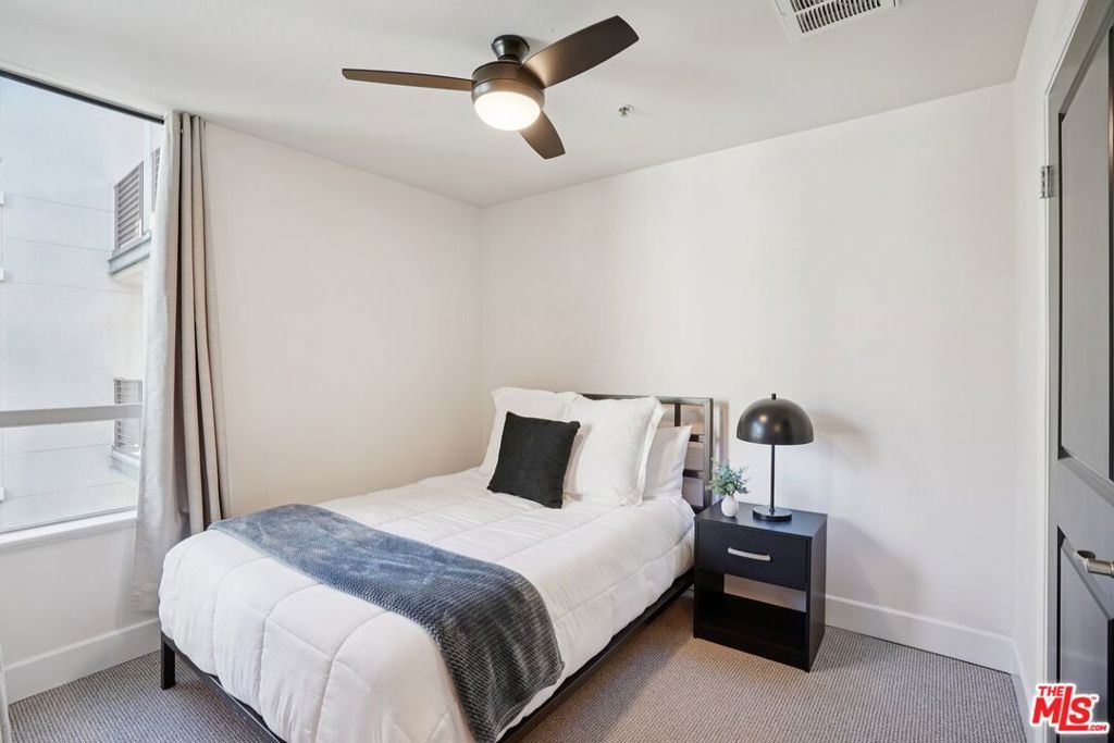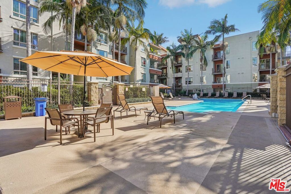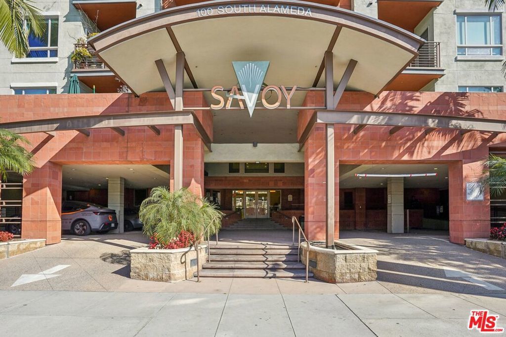 Residence #371 proves that a studio can live large. As an end unit, it enjoys added privacy and beautiful natural light, with sliding glass doors opening to a private balcony overlooking the serene pool courtyard and swaying palms: a peaceful, resort-style backdrop in the middle of the city. Exceptionally clean and move-in ready, this home features a full size kitchen with white cabinetry, granite countertops and stainless steel newer appliances. Upgraded with sleek charcoal porcelain tile flooring, cool lighting fixtures, and bold black door and hardware details add a crisp, modern edge throughout. The defined sleeping alcove connects to a fully built-out walk-in closet with custom organization, while the updated bathroom showcases a sleek vanity, black fixtures, and a modern glass-enclosed shower/tub. One assigned parking space is included. Savoy is one of Downtown LA's most established and sought-after communities, known for its lush landscaped courtyards, resort-style pool and spa, fitness center, screening room, business center, library, rooftop deck, and 24-hour attended lobby with guest parking. It also boasts some of the lower HOA dues in Downtown a significant advantage for both owner-occupants and investors. Located at the crossroads of Little Tokyo and the Arts District, residents enjoy a true neighborhood feel with walkable access to independent cafes, acclaimed restaurants, galleries, specialty markets, and Metro connections, plus quick access to the 101, 110, 5, and 10 freeways. It's a vibrant yet village-like pocket of DTLA that continues to attract creatives, professionals, and long-term homeowners alike.