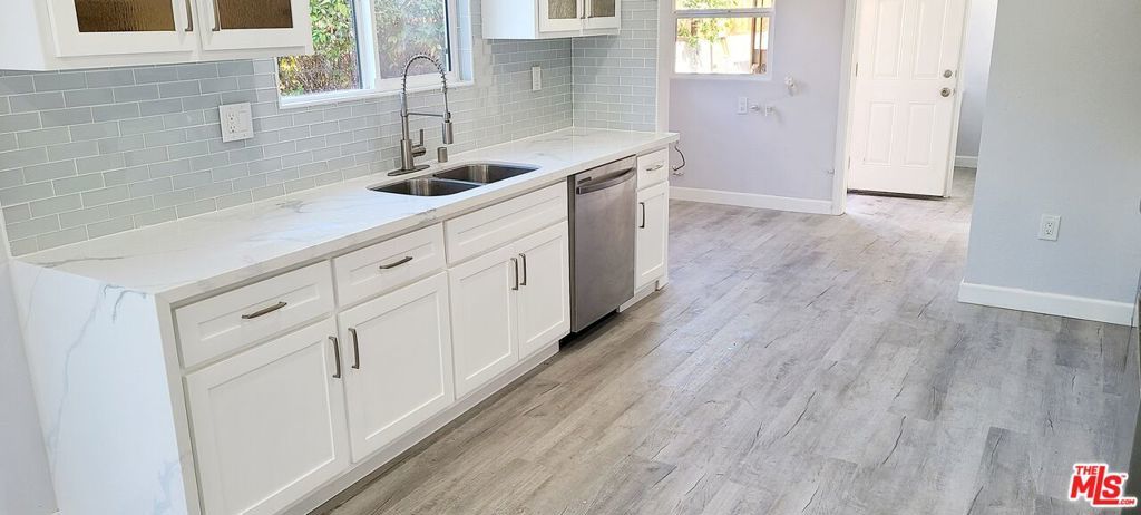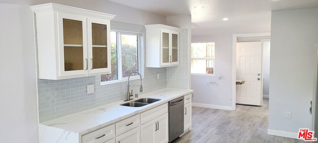 REDUCED PRICE FOR QUICK SALE !!! This stunning home offers a fabulous new, all wood shaker style kitchen with soft-closing cabinet door hinges. Some cabinet doors feature a textured glass panel for a beautiful privacy look. The white quartz Carrara counter tops are glamorous, connecting to the polished backsplash. Included, are new stainless steel appliances by Samsung. The French door refrigerator has an ice maker and the oven has a 5 burner cook top, with an exquisite wall range hood above it. The sink is stainless steel, with a restaurant style water faucet. Bathrooms have new, modern-style vanities with illuminated make-up mirrors. Main bathroom has an eye-catching brushed nickel frameless shower/tub door with white Carrara-tiled shower walls. Brushed nickel lighting fixtures, and faucets make the bathrooms look amazing. Luxury vinyl plant-gray Charleston Oak Style flooring is water proof and scratch resistant throughout the home. Fresh radiant gray paint on the interior walls, with ice white ceilings, doors and baseboards. Recessed lighting with brushed nickel lighting fixtures compliment this gorgeous home with a spacious open floor plan. New double pane windows, with stylish grids for the front windows. Upgraded electrical and plumbing. New roof. The exterior has an elegant white fiberglass door with modern lighting fixtures. This must see home screams LOCATION, LOCATION, LOCATION ! Sitting on this palm tree lined street are various entertainment and dining options. ADU potential with a HUGE detached garage in the backyard, buyer to verify. Some images are virtually staged.