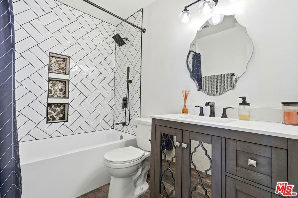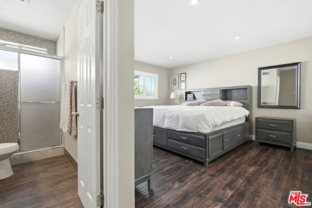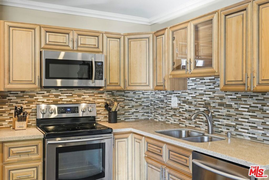 FHA approved & included on a MAJOR LENDER'S APPROVED LIST for conventional financing! Welcome to a beautifully updated second floor retreat. Inside, rich laminate plank flooring and elegant plantation shutters complement the bright, open floor plan. The updated kitchen features stainless steel appliances, including a built-in microwave and dishwasher, along with a rare walk-in pantry that adds exceptional storage. Relax and recharge in the remodeled bathroom, complete with a large soaking tub that's perfect for unwinding at the end of the day. Parking is easy with two spaces: an assigned covered spot with storage located close to the unit, plus a second space in the nearby gated lot. Enjoy resort-style amenities including three pools, two spas, a recreation room, BBQ areas, a play area, and a basketball court. The HOA adds tremendous value by covering hot and cold water, trash, cable, earthquake insurance, high-speed Spectrum internet, and a premium streaming package featuring Disney+, HBO Max, Paramount+, Peacock, and more. Ideally located near the 101 and just minutes from Ventura Blvd's shopping, dining, and coffee shops this is low maintenance living in a location that truly delivers.