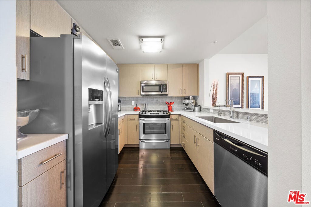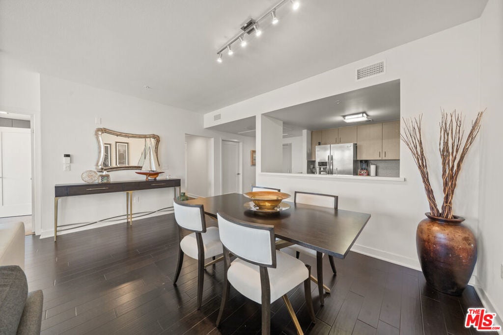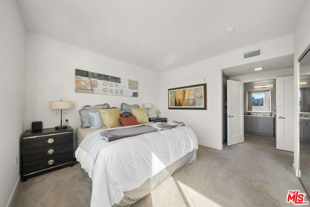 Penthouse 7 sits at the very top of The Element Building and offers a bright, modern 3-bedroom, 2-bath layout with amazing city views, including the DTLA and Koreatown skyline. The open floor plan feels airy and comfortable, with wide-plank hardwood floors, recessed lighting, and lots of windows that bring in natural light throughout the day. The kitchen is clean and contemporary, featuring polished quartz countertops, modern cabinetry, and stainless steel appliancesincluding a refrigerator, range, and dishwasher. The spacious primary bedroom opens to the balcony and includes a walk-in closet and a private en-suite bath. The second bedroom is well-sized and offers great privacy. The third can be used as an additional room for guests or an office for those that work from home. A separate laundry room with a full-size washer and dryer adds everyday convenience. This penthouse comes with two parking spaces and bicycle storage in a gated garage. Residents also enjoy access to a full fitness center with boxing and yoga areas, a landscaped courtyard with lounge seating, a community BBQ, and a pet-friendly dog walk. Located in the heart of Koreatown, The Element puts you close to some of LA's best restaurants, cafes, and nightlifefrom popular Korean BBQ spots to cocktail lounges and local coffee shops. With quick access to DTLA, Larchmont Village, and the Metro, this penthouse offers a great mix of comfort, style, and vibrant city living.