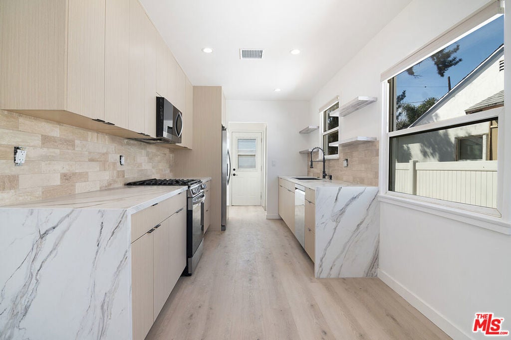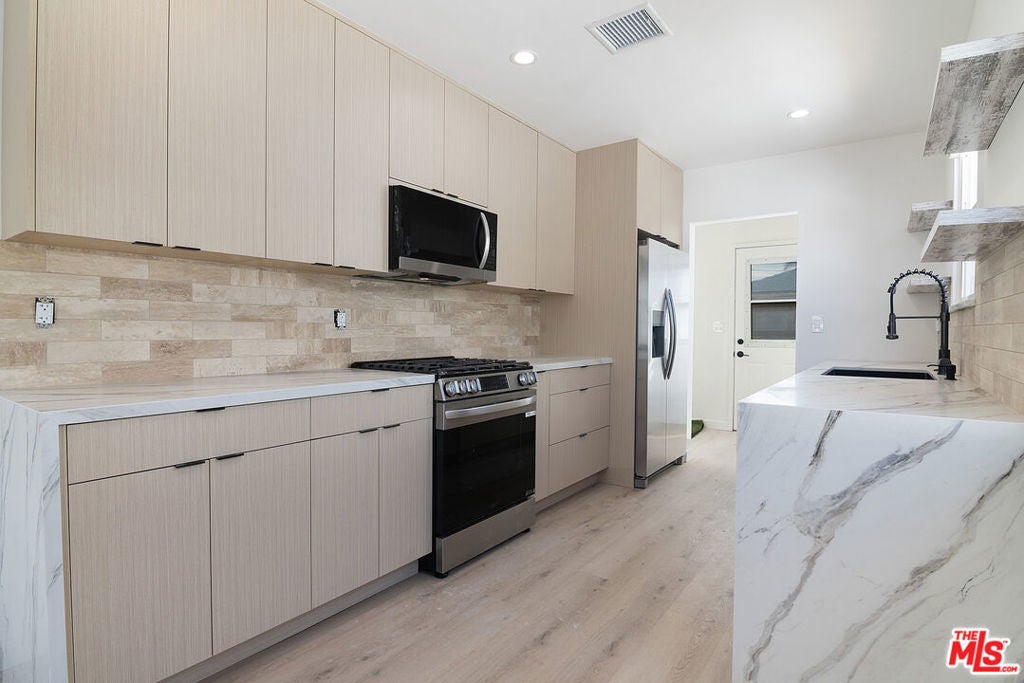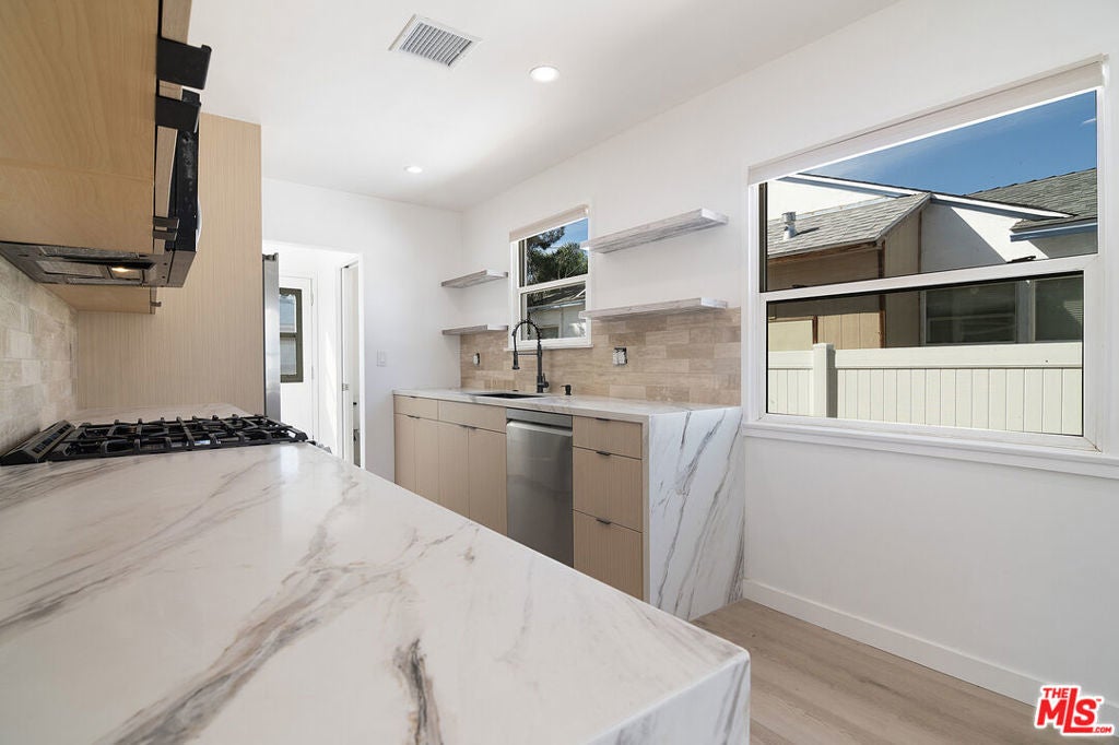 This beautifully fully remodeled home is ready for tenant to call home. It is hard to find a rental done with such high end finishes. The home has incredible natural light with a great living and magnificent designer done kitchen. The home has 3 bedrooms, one full bathroom and a half bath near the kitchen. The home has central air and heat making it extremely comfortable. All of the bedrooms are similar in size. One bedroom leads out to the backyard as well as a door off the kitchen. The backyard is extremely spacious with a large orange tree and perfect for outdoor gatherings and dinners. The street and location is a quiet beautiful residential area in the the highly desired Lake Balboa pocket.