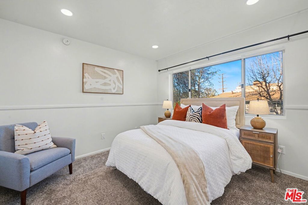 Stylishly updated 2BR/2BA condo in the heart of Sherman Oaks featuring a desirable split-bedroom layout and two parking spaces. The open living room is anchored by a spacious private ensuite balcony, creating an ideal indoor-outdoor flow, perfect for morning coffee or unwinding with a favorite drink under the stars. Thoughtful upgrades include luxury vinyl plank flooring, fresh paint, modern lighting, sliding closet doors, new LED vanity mirrors, and a reimagined wet bar with built-in storage. The kitchen features quartz countertops and new stainless steel appliances, along with in-unit washer and dryer, Nest system, and a cozy gas fireplace. The Consulate building offers a heated pool, BBQ area, gated tandem parking, and elevator access. Unit #203 is a corner unit providing great windows and increased natural light. An excellent opportunity for an owner-user or rental, conveniently located near the Kester Elementary School district, Ventura Blvd, Sherman Oaks Galleria, parks, and easy access to the 101 and 405 freeways. An ideal starter home in Sherman Oaks, done right!