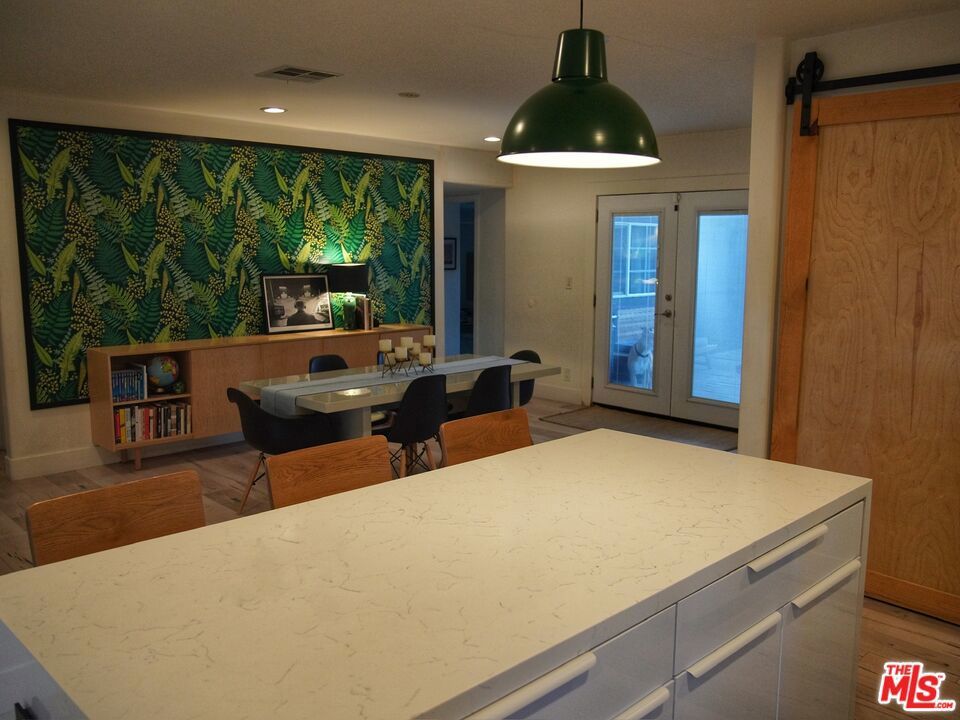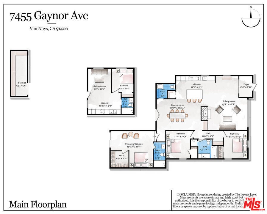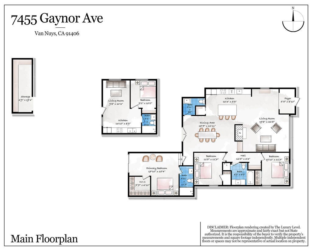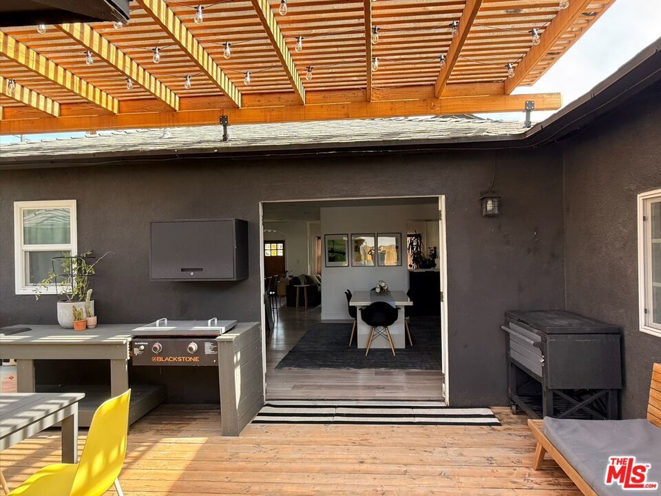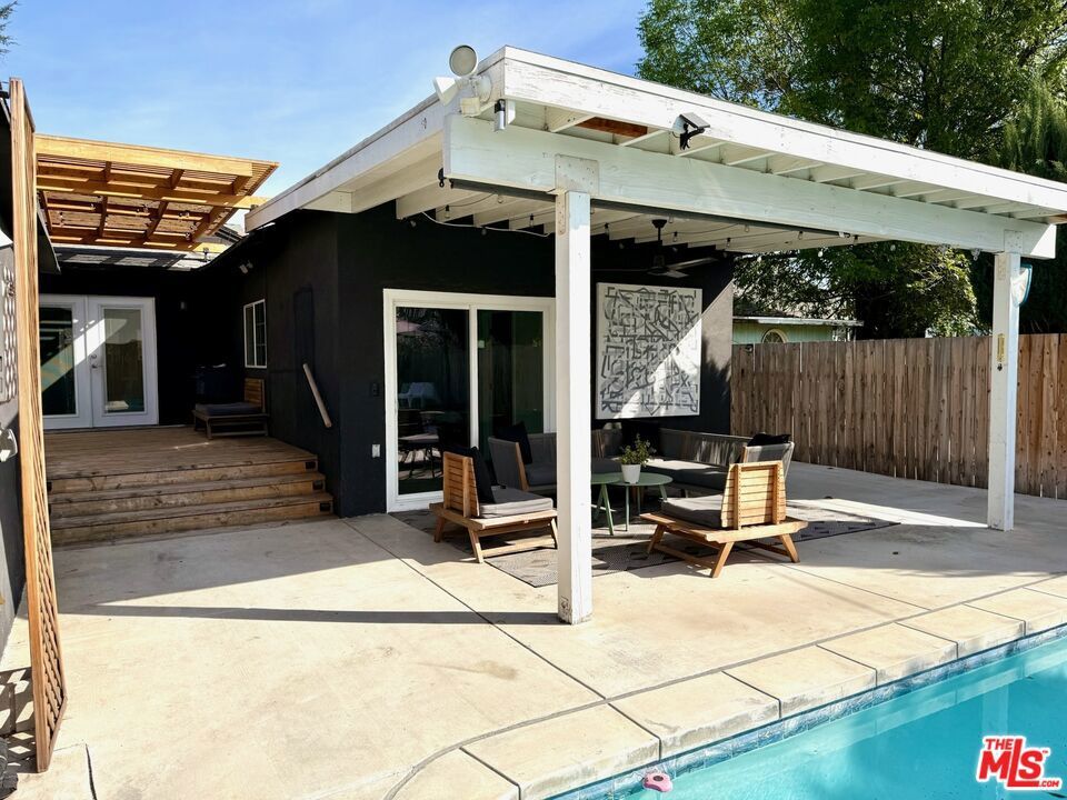 Thoughtfully upgraded and move-in ready, this Lake Balboa corner-lot home + ADU (4 bed + 4 bath in total) offers flexible living and effortless indoor-outdoor flow. The main residence (approx 1,609 sq/ft) features 3 bedrooms and 2.5 baths, beginning with a defined entry that opens to a bright, open-concept. The dining space is subtly separated, with the kitchen serving as the central hub, creating distinct zones while maintaining a connected feel. The two secondary bedrooms flank the full bath and laundry, while the primary suite sits privately two steps down to the rear of the home with an ensuite bath, walk-in closet, built in wardrobe and sliding doors to a pergola-covered, poolside patio. Improvements inside and out reflect care and intention, resulting in a clean, modern aesthetic that remains warm and livable. The private backyard retreat includes a pool, multiple entertaining areas, a built-in chef's station with Blackstone cooktop & gas grill, and two grassy areas, one boasting a fire pit. At the rear and side of the lot are two storage/workshop spaces, one open style and the other more sizable and enclosed with a sliding barn door. Lastly, the detached 1-bedroom ADU (approx 300 sq/ft) styles both modern kitchen and 3/4 bath, offering excellent versatility for guests, extended family, or potential income and includes its own outdoor deck area, with the potential to reconfigure a private entrance. All set on a generously sized lot with mature landscaping, pool, decks, & - patios with truly thoughtful separations of spaces - this home delivers privacy, comfort, and versatility in a desirable Lake Balboa setting.