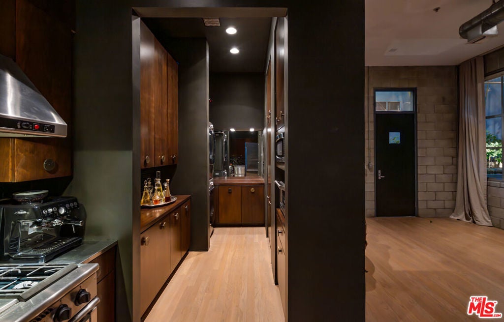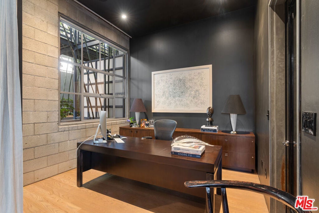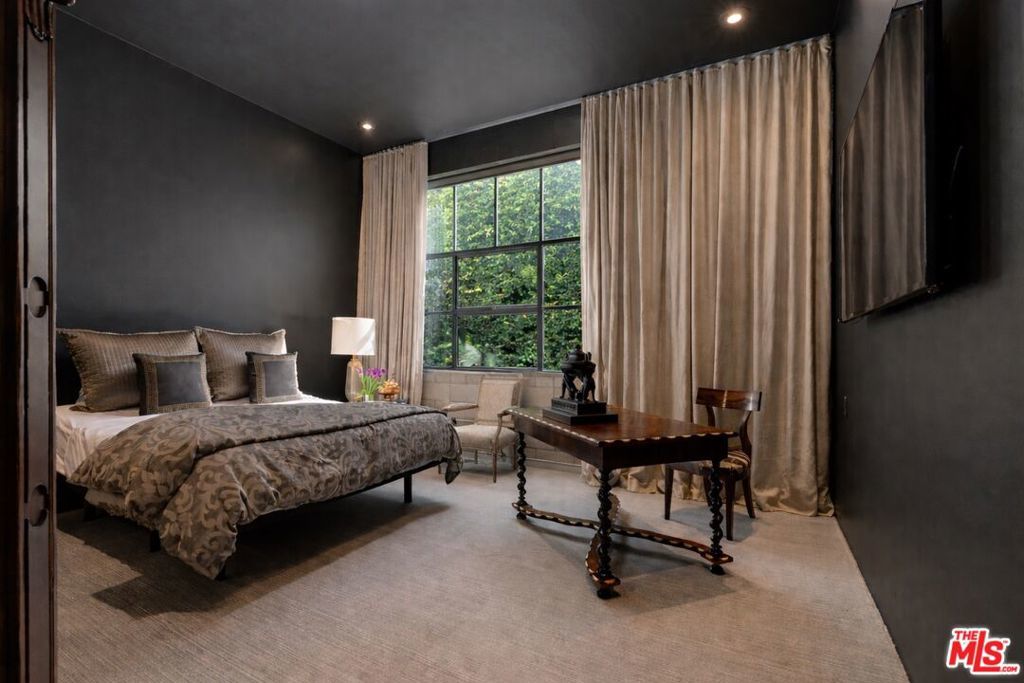 The Lofts at Melrose Place. Discretely located off of West Hollywood's most iconic street, this previously published designer-owned residence places you moments from world-renowned Melrose Place boutiques, cafes, shopping, acclaimed dining and the recognizable Sunday Farmers Market. The setting is a walker's paradise. Located in a prestigious private-ownership building, the property is known for its discretion, strong management and notably low HOA dues. Loft 101 is considered one of the building's most desirable units. Soaring 11.5-foot ceilings create dramatic volume, balanced by a layout that feels both open and refined. It is an entertainer's dream. The interiors have been professionally curated, featuring custom cabinetry, hand-made glass tilework and elegant travertine finishes in the primary bath. Newly refinished white oak floors bring warmth and architectural continuity. Two en-suite bedrooms anchor the floor plan, one styled as a sophisticated home office, while a reimagined service area introduces a pantry, bar and separate laundry room. The spacious primary suite is a perfect sexy retreat. Beyond the interiors, a private terrace overlooks a beautifully landscaped garden. Abundant garage storage and two side-by-side parking spaces complete this polished West Hollywood offering.