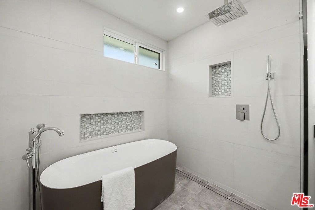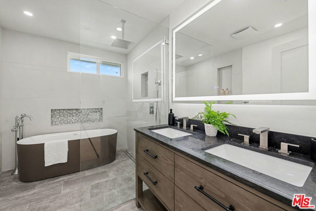 Stunning totally remodeled and all new finishes 3 bed/2 bath Traditional with detached 1 bed/1 bath ADU with beautiful contemporary finishes and filled with natural light. Enclosed and gated front yard with charming brick walkway and mature tree leads to double doors opening to entry with built-ins. Living room with modern linear fireplace and light oak flooring throughout. Open gourmet kitchen with center island with quartz countertops waterfall edge finish and breakfast bar, all new cabinetry, farm sink, all new stainless steel appliances leads to dining room and family room with sliding door to back covered patio and grassy yard. Primary suite with sliding door to side deck patio, custom built wall of closets, and spa-like full bath with marble and tile finishes, dual sinks, soaking tub and shower. 2 additional bedrooms in the main home and a separate ADU with beautiful vaulted and wood beamed ceilings in living room with dining area and all new kitchen, sliding door to private back patio and entrance and includes a spacious 1 bed and 3/4 bath with tile finishes, laundry hook-ups and mini split unit ac/heat. Additional features include central ac/heat in main house, tankless water heater, all newly installed dual paned windows, newer roof and sliding doors throughout. Newly landscaped and hardscape in backyard. Close proximity to Westwood, UCLA, Century City, Beverly Hills and 10 and 405 fwy access and light rail. Overland Avenue Elementary School. Move right in!