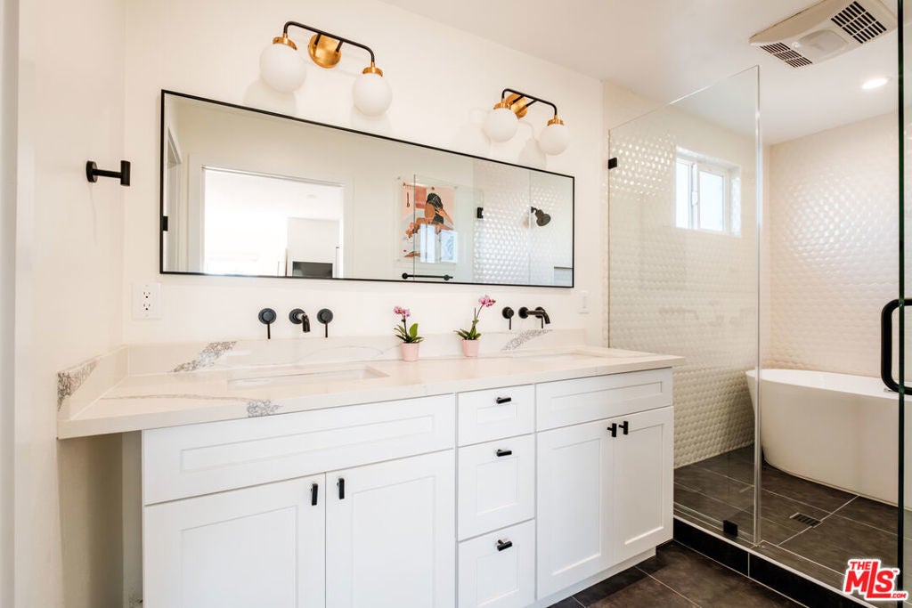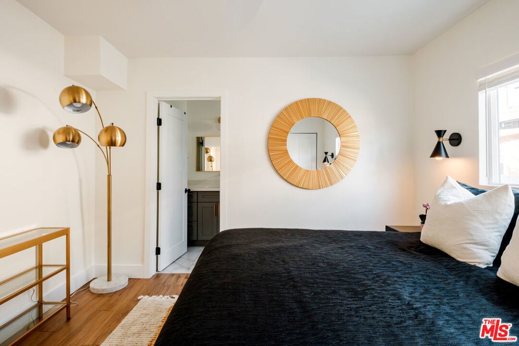 Spanish Elegance Meets Modern Luxury in the Heart of Mid-City Heights. A refined blend of classic Spanish architecture and modern sophistication, this fully renovated residence offers 4 bedrooms and 3 full bathrooms with an open, airy floor plan designed for effortless living and entertaining. The chef's kitchen with stainless steel appliances flows seamlessly into the main living areas, including a dining room accented by a built-in bar designed for effortless entertaining. The entire upper level is devoted to a primary suite retreat, featuring a beautifully appointed ensuite with a freestanding soaking tub and dual vanity sinks, creating a serene private sanctuary. On the main level, one guest bedroom is ensuite, another is oversized and currently used as a workout and family room, and the fourth is styled as a chic home office, offering exceptional flexibility. Indoor and outdoor living are enhanced by a large covered rear patio and a spacious yard, ideal for al fresco dining and entertaining. An extra-long gated driveway provides parking for multiple vehicles and is complemented by a detached one-car garage. Located in Mid-City Heights with convenient access to Culver City, the vibrant West Adams district, and the 10 Freeway, this turnkey home offers elevated living in a central and connected location.