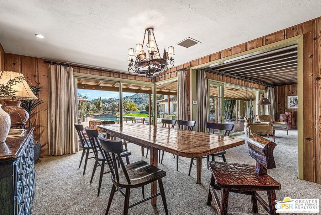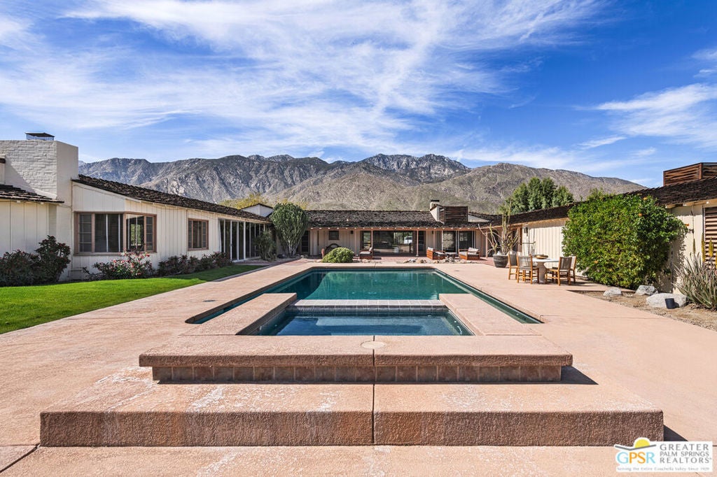 Step back in time at the Blankenhorn-Gilmore Residence, the foundational private estate of Smoke Tree Ranch and a unanimously designated Class 1 Historic Resource. Built in 1930 by master architect Garrett Van Pelt Jr. and sensitively expanded by the iconic Albert Frey, this 5-bedroom, 7-bathroom sanctuary served as the architectural blueprint for the entire enclave. Set on 1.88 deeded acres across three lots plus an exclusive view lot, the 5,504-square-foot home perfectly captures the "Romance of the Old West" with its signature Ranch-style horizontality and board-and-batten exterior. The interiors are a masterclass in rustic sophistication, featuring dramatic exposed-beam ceilings, natural wood-paneled walls, and a massive floor-to-ceiling red brick fireplace. Wooden casement windows frame unobstructed, panoramic mountain views and lead to a private backyard oasis complete with a rectangular pool and integrated spa. This is a rare opportunity to steward a piece of Palm Springs history once owned by the Ranch's principal developer, L. Mac Blankenhorn, offering a level of pedigree and privacy that is simply unmatched.