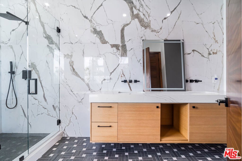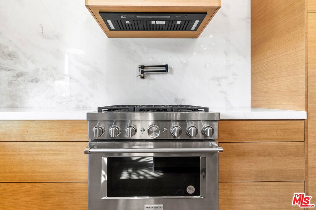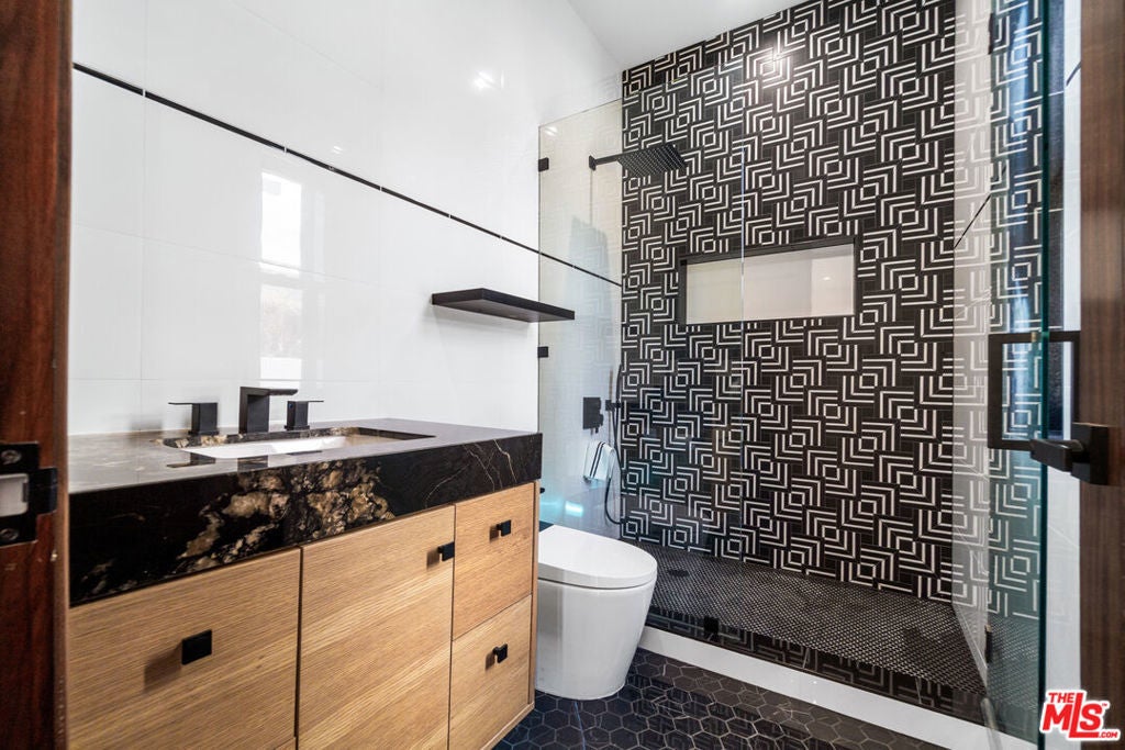 Set in the heart of Palm Desert, this striking newly constructed contemporary residence offers the perfect balance of refined design, modern comfort, and resort-style living. Privately gated and thoughtfully designed, this 4-bedroom, 3-bathroom home invites you to enjoy sweeping views, a sense of privacy, and the kind of seamless indoor-outdoor lifestyle the desert is known for.From the moment you enter through the dramatic 10-foot double doors, you're welcomed into a bright, open interior designed for both everyday living and elevated entertaining. Engineered hardwood flooring, custom interior doors, a sleek smart electric fireplace, and curated black and gold fixtures and hardware create a clean, sophisticated aesthetic throughout.At the center of the home, the open-concept kitchen is made to gather in whether you're hosting friends for cocktails or enjoying a quiet morning at home. It features custom cabinetry, quartz countertops, a dramatic waterfall island, pot filler, premium KitchenAid stainless steel appliances, and a stylish bar area with wine refrigerator.The layout includes three secondary bedrooms plus a spacious primary suite with a walk-in closet and a spa-inspired ensuite bath featuring dual sinks, a soaking tub, and a walk-in shower overlooking the lush yard. Additional bathrooms showcase striking stone and porcelain finishes and smart toilets, blending design with modern convenience.Outside, the home truly shines as a private desert retreat. Enjoy a heated pool and jacuzzi, with space to relax, unwind, and entertain with ease. Whether it's a weekend gathering, sunset dinner, or poolside afternoon, this home is designed to make hosting feel effortless.Additional highlights include smooth Santa Barbara-style stucco, new copper plumbing, new gas line, new electrical, new sewer, central air and heating, and a 2-car garage with deep epoxy flooring and an aluminum glass garage door.Ideally located in central Palm Desert, this home offers convenient access to the area's top dining, shopping, golf, entertainment, and everyday amenities placing you close to everything while still enjoying a private, polished retreat.