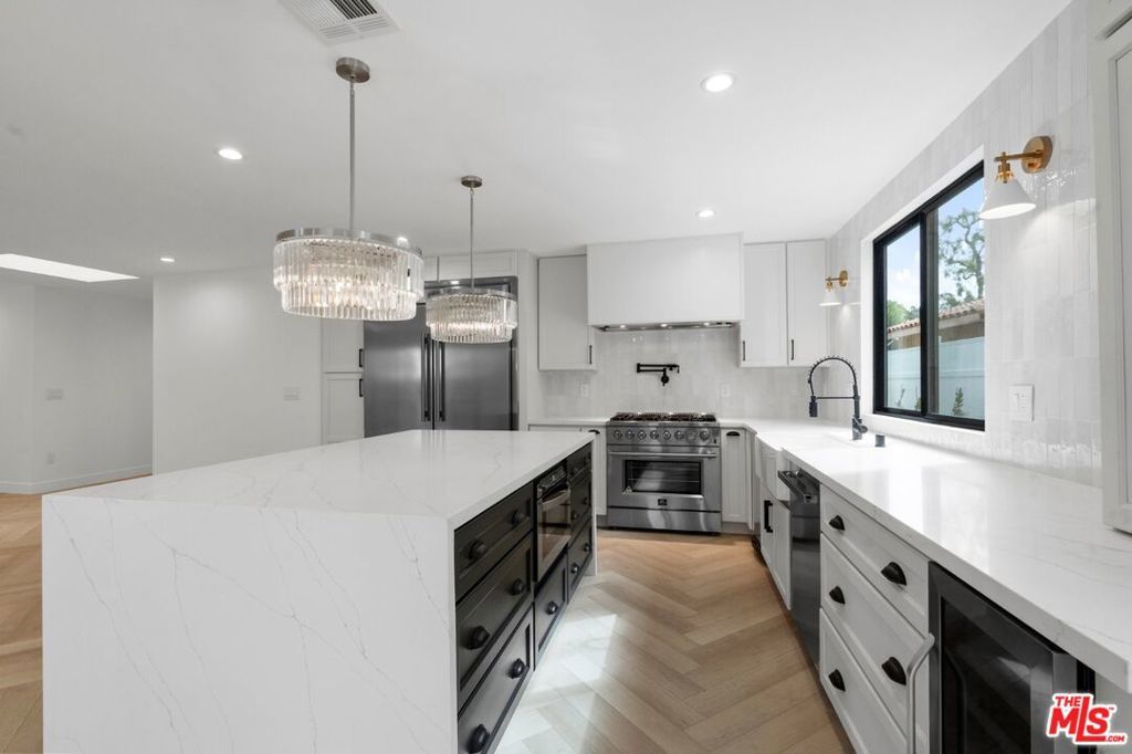 Nestled in the scenic hills of Calabasas, this stunning single-story home is available for rent for the first time after a complete remodel, offering modern luxury and serene living. Boasting 4 spacious bedrooms and 3.5 designer baths, this residence blends contemporary style with timeless comfort.Step inside to discover an open-concept floor plan flooded with natural light, featuring designer herringbone vinyl wood floors throughout. The kitchen is equipped with high end stainless steel appliances, quartz countertops, and a large center island perfect for both everyday living and entertaining.The primary suite is a private retreat, offering a spa-like en-suite bathroom with dual vanities, double closets, and a walk-in shower. Three additional bedrooms provide ample space for family, guests, or a home office.Relax in the bright and airy living room featuring a gas fireplace and seamless indoor-outdoor flow. Glass sliding doors open to a beautifully landscaped backyard surrounded by mature trees, set under the canopy of a 250 year old oak tree, with a nice view, featuring a spacious patio and plenty of room for al fresco dining or relaxing under the stars.Additional highlights include a spacious two-car garage, long driveway, energy-efficient upgrades, laundry room with gas hookup, and plenty of parking for guests. Located just minutes from Viewpoint School, Calabasas High School, The Commons, and Malibu Beach, this home offers the perfect blend of privacy and convenience.Experience the best of Calabasas living in this immaculate, like-brand-new home.