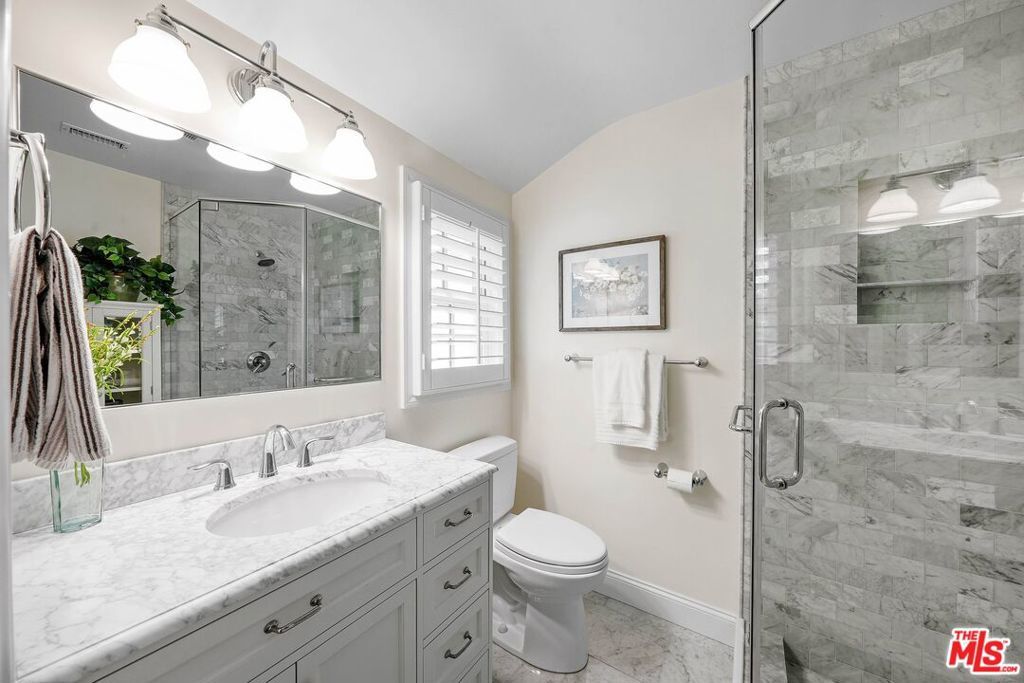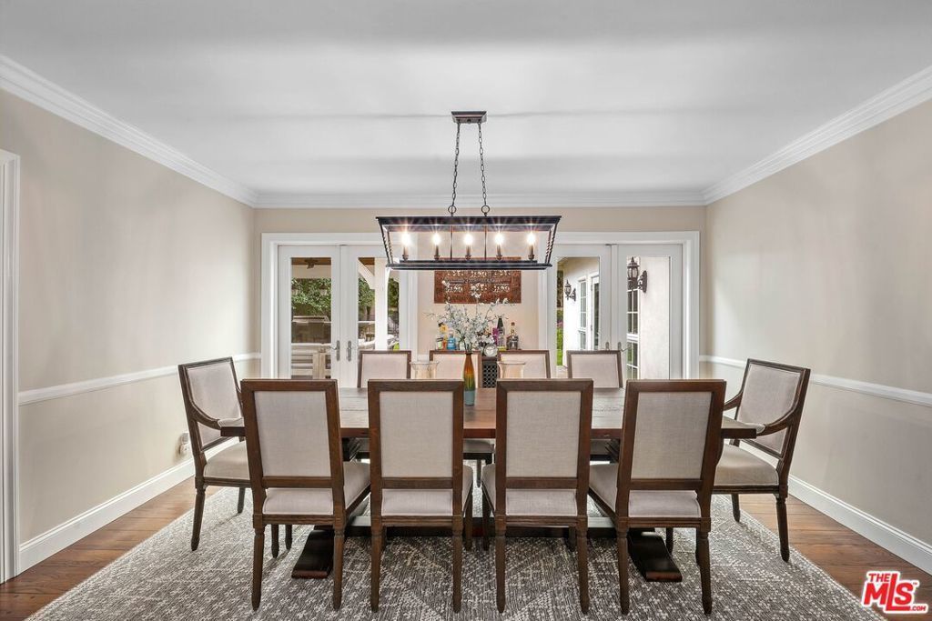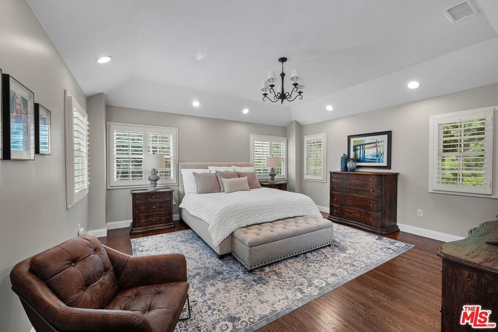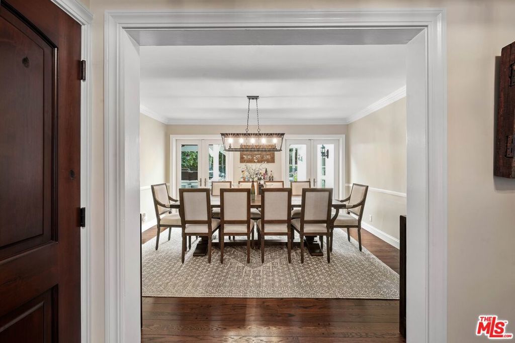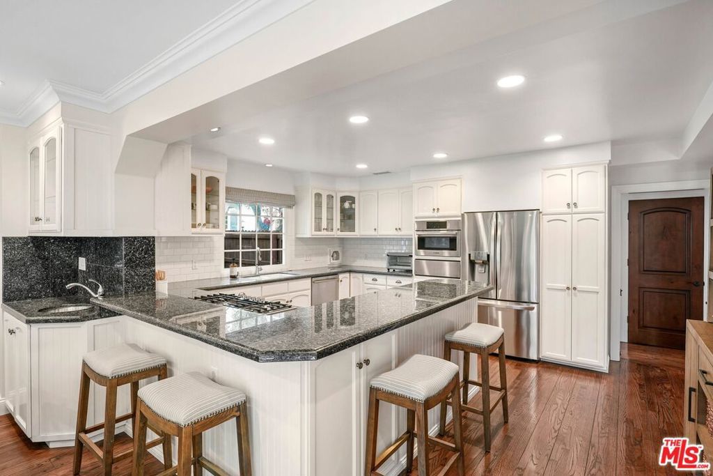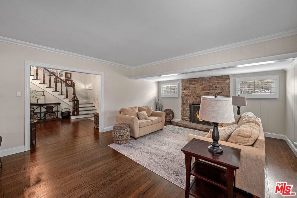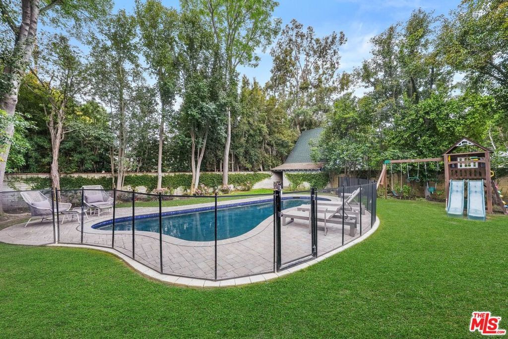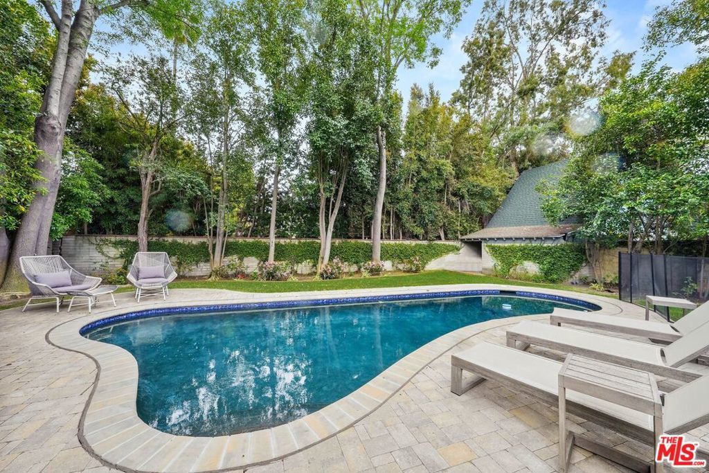 Nestled in the coveted "south of the Boulevard" neighborhood of Sherman Oaks, this traditional style, 2-story, updated home located in the acclaimed Lanai school district is a true gem. From the charming brick motor court to the lush rose garden to the brick & stone chimney, every detail exudes charm and character. Inside, artisan woodwork and hardwood floors welcome you into the expansive 2-story foyer. The large living room provides space for intimate gatherings, while the formal dining room sets the stage for elegant meals. The updated kitchen includes stainless steel appliances, granite countertops, and a breakfast bar opening to an additional dining area and family room. Upstairs, the primary suite impresses with high ceilings, large windows, a walk-in closet, and an en-suite bathroom featuring a large steam shower and dual sinks. Two additional upstairs bedrooms and remodeled bathrooms ensure ample space for family and guests. French doors from the family room, dining room, and first floor bedroom lead out to the expansive grounds where you'll find a serene pool, generous grassy area, large patio, and a newly installed loggia complete with a stone fireplace, heater, and built-in barbecue area with bar seating - all surrounded by mature trees and beautiful flower gardens. Additional features include an attached garage and updated large laundry room just off the kitchen. Conveniently located near both the 101 and the 405, this property is perfect for navigating the best of the Valley and the Westside. Don't miss the opportunity to make this enchanting retreat your own!