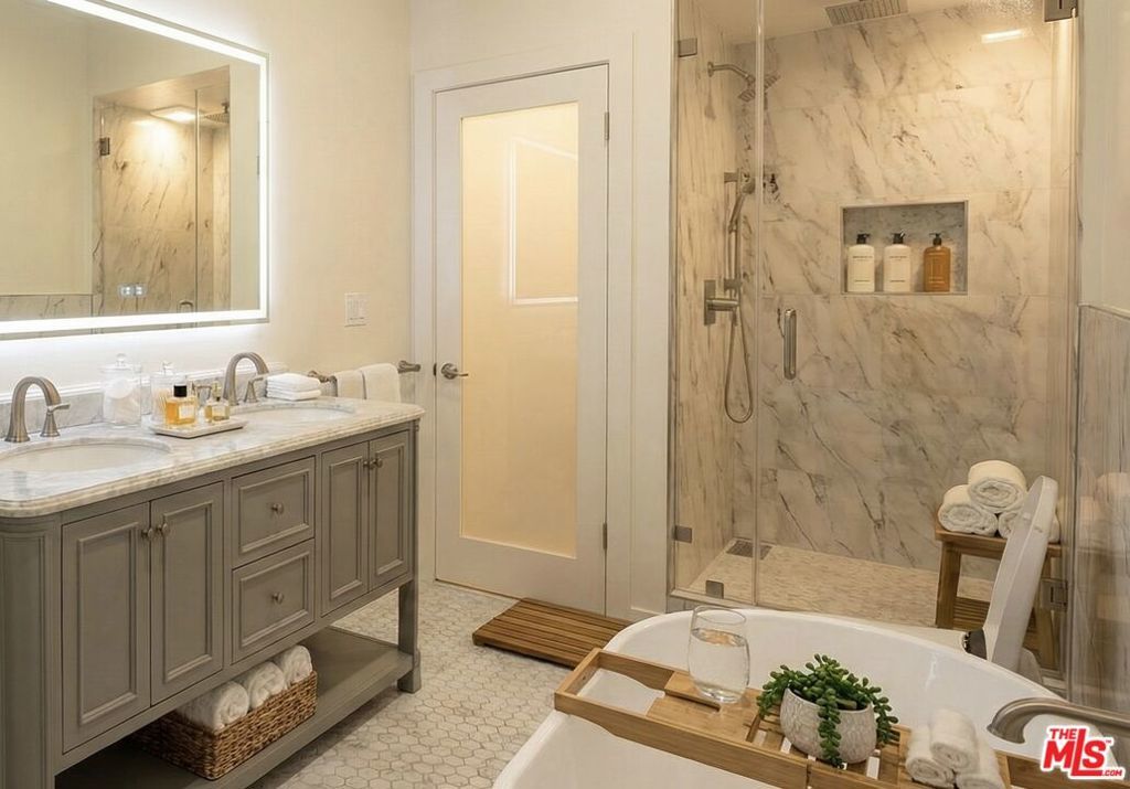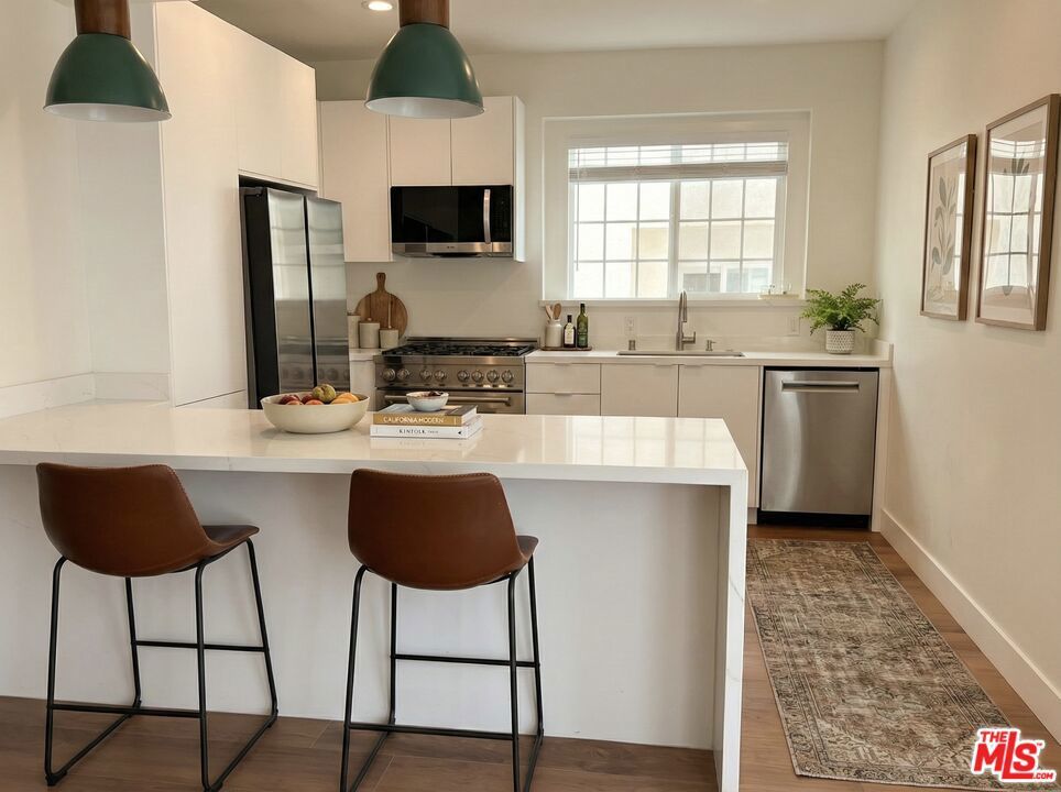 Experience true new-construction quality in the heart of Pico-Robertson with this completely rebuilt 2-bedroom, 2-bath residence offering 1,250 square feet of thoughtfully designed living space. Taken down to the studs and reimagined with all-new systems, finishes, plumbing, and electrical, this home delivers the feel and function of brand-new construction in one of Los Angeles' most connected residential neighborhoods. Available now at $4,800 per month on a 12-month lease, with pets welcome.The open-concept layout creates a seamless sight line across the kitchen, dining, and living areas, filled with consistent natural light throughout the day. With true 1,250-square-foot proportions, the living area comfortably accommodates a full sectional and media setup without compromise. Both bedrooms are designed as private suites, each featuring its own full bathroom and closet, making the layout ideal for couples, roommates, or anyone seeking a dedicated home office. Zone-controlled mini-split systems in every room allow for individualized heating and cooling, eliminating shared thermostat conflicts, while the in-unit washer and dryer provide everyday convenience without the need for shared laundry.The kitchen is appointed with quartz countertops, stainless steel appliances including refrigerator, range, dishwasher, and microwave, and soft-close Italian cabinetry that blends modern style with functionality. Both bathrooms are fully tiled and finished with contemporary fixtures and vanities, reinforcing the home's clean, modern aesthetic. This is not a cosmetic update but a comprehensive, to-the-studs renovation with new insulation and systems throughout.Located in a quiet, walkable pocket of Pico-Robertson just south of Beverly Hills and east of Century City, the property offers easy access to Robertson and Pico's restaurants, cafs, and daily essentials, along with convenient routes to the Westside, Santa Monica, Mid-City, and Downtown LA. This is a rare opportunity to lease a truly rebuilt, design-forward home in a central Los Angeles location that balances residential calm with city accessibility.