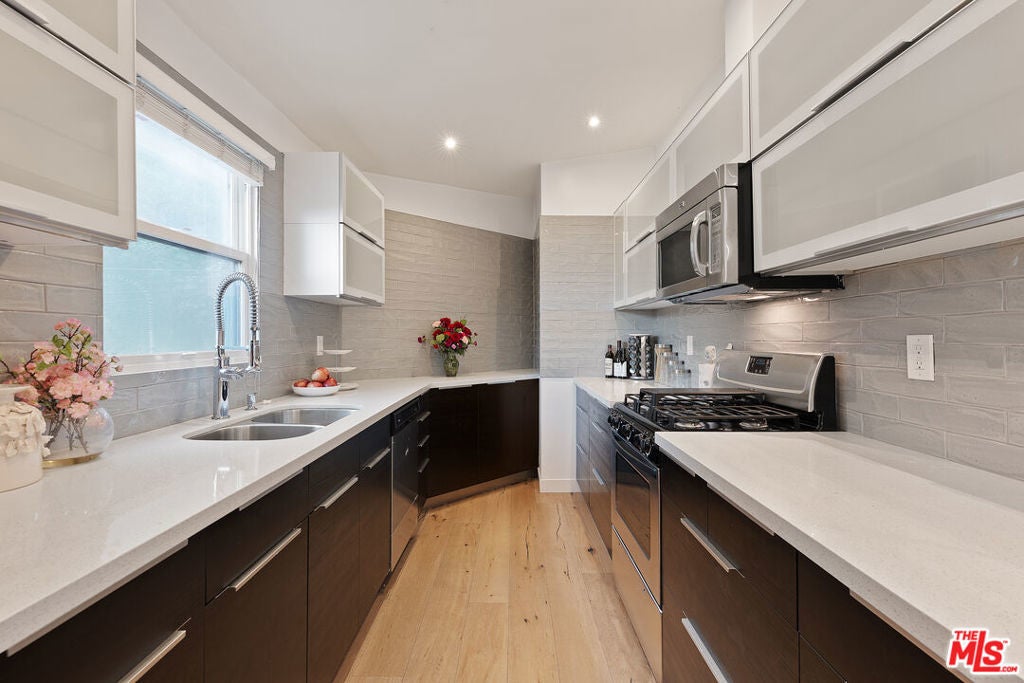 Set in the heart of iconic Laurel Canyon, this recently remodeled contemporary retreat blends refined design with effortless California living. Spanning approximately 2,200 square feet, the residence showcases a versatile floor plan with 3 bedrooms and a flexible den ideal for a home office, media lounge, or guest space. Rich hardwood floors, curated high-end finishes, and a statement fireplace create a warm yet sophisticated ambiance throughout. Natural light pours in through multiple skylights, enhancing the home's airy feel, while modern upgrades - including a Nest thermostat, tankless water heater, and integrated security system with cameras - offer comfort and peace of mind. The primary suite opens to an expansive 400-square-foot private deck, perfect for morning coffee or sunset entertaining, and the enclosed rear yard is gated for privacy and pre-wired for outdoor media. Perfectly positioned just minutes from Sunset Boulevard, Beverly Hills, and the San Fernando Valley, this exceptional property presents a rare opportunity for discerning end users or investors seeking style, flexibility, and a premier canyon lifestyle.