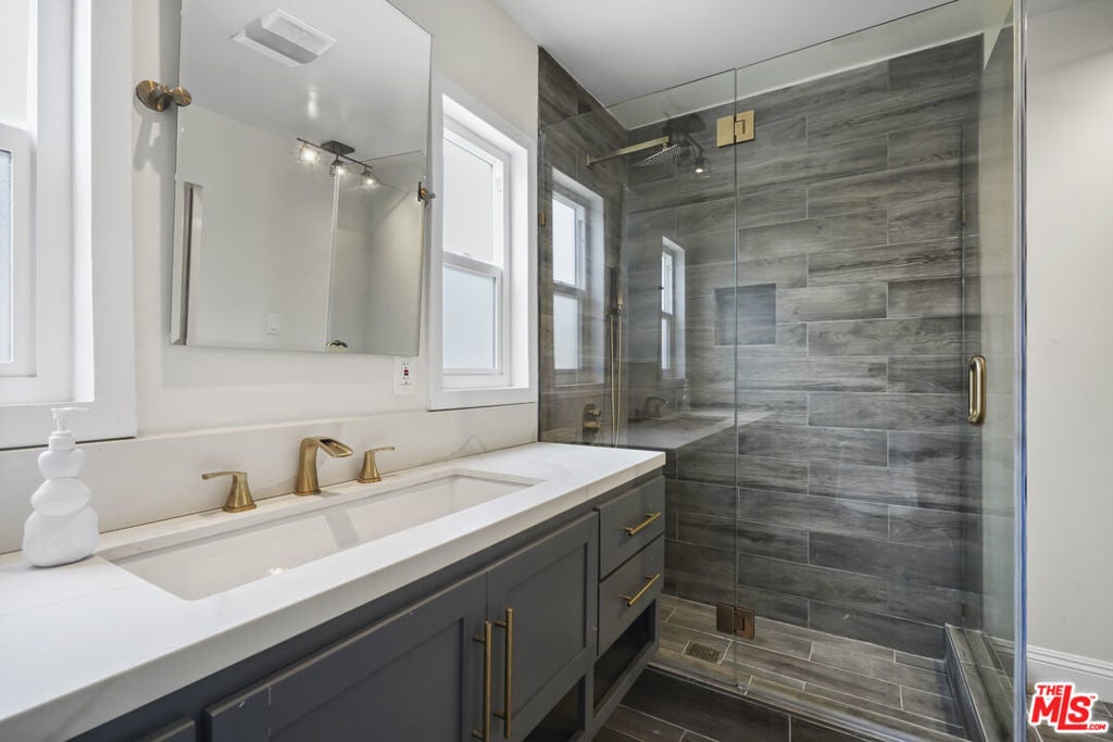 A beautifully renovated 3 bedroom, 2 bath residence nestled in the highly desirable Baldwin Vista / Culver City adjacent neighborhood. Thoughtfully updated throughout, this 1,590 sqft home blends modern design with comfortable, everyday living. Step inside to an open and inviting floor plan featuring stylish vinyl laminate and tile flooring, expansive living and dining areas, and a dramatic wall of windows that showcase serene backyard views and fill the home with natural light. A cozy fireplace anchors the living space, creating the perfect setting for relaxing evenings or entertaining guests. The contemporary kitchen is both functional and elegant, appointed with brand new stainless steel appliances, abundant cabinetry, and a convenient pantry for added storage. Both bathrooms have been completely reimagined with sleek finishes and upgraded fixtures, offering a clean, modern aesthetic. Two of the three closets have been professionally designed to maximize organization and functionality. Recent upgrades include a brand new central heating and air conditioning system, all new interior doors, fresh stucco, updated paint and trim, a new roof, and new fencing. The beautifully landscaped grounds enhance curb appeal and provide a welcoming outdoor setting. With quality improvements throughout, this turnkey home offers style, comfort, and convenience in a prime location. Come be the newest neighbor!