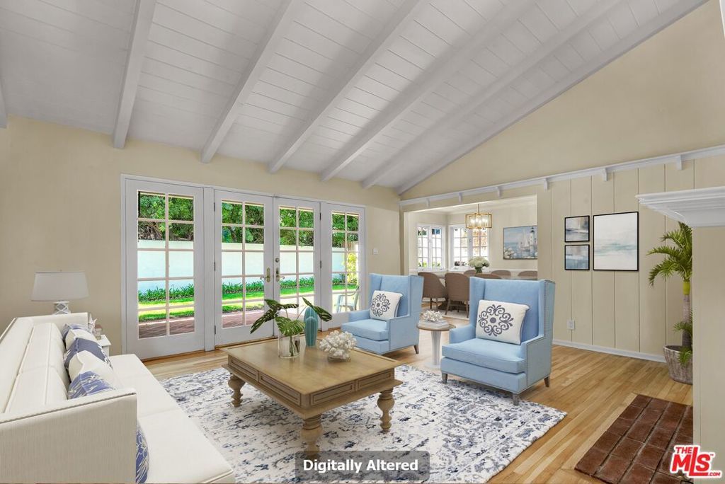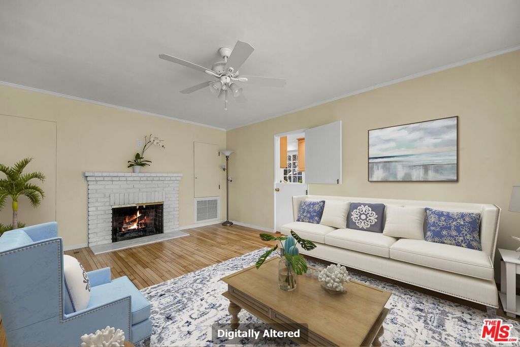 Welcome to this charming single-story 3-bedroom, 2-bath home in the heart of Brentwood, offering approximately 1,900 square feet of inviting living space. Freshly painted and featuring beautifully refinished hardwood floors throughout, this residence blends classic character with modern comfort. The thoughtfully designed floorplan includes a spacious living room and a separate family room - each with its own gas fireplace - creating warm and inviting spaces for relaxing or entertaining. A formal dining area flows seamlessly into a bright kitchen complete with a cozy eat-in breakfast nook, perfect for casual meals and morning coffee. A separate laundry area adds convenience and functionality. Enjoy year-round comfort with central air conditioning, along with secure, direct access from the attached 2-car garage - all on one level for easy living. A beautifully refreshed backyard awaits, complete with new hedging and a grassy lawn - perfect for unwinding, playtime, or entertaining guests. Ideally located near Kenter Canyon Elementary School and many of West LA's premier private schools, and just moments from the shops and dining at Brentwood Country Mart, as well as University of California, Los Angeles (UCLA). Experience the best of West Los Angeles living in this warm and welcoming home. No smoking and no pets. Some photos are digitally staged.