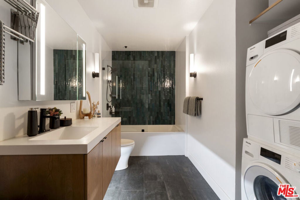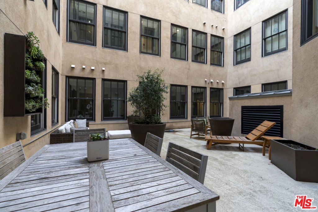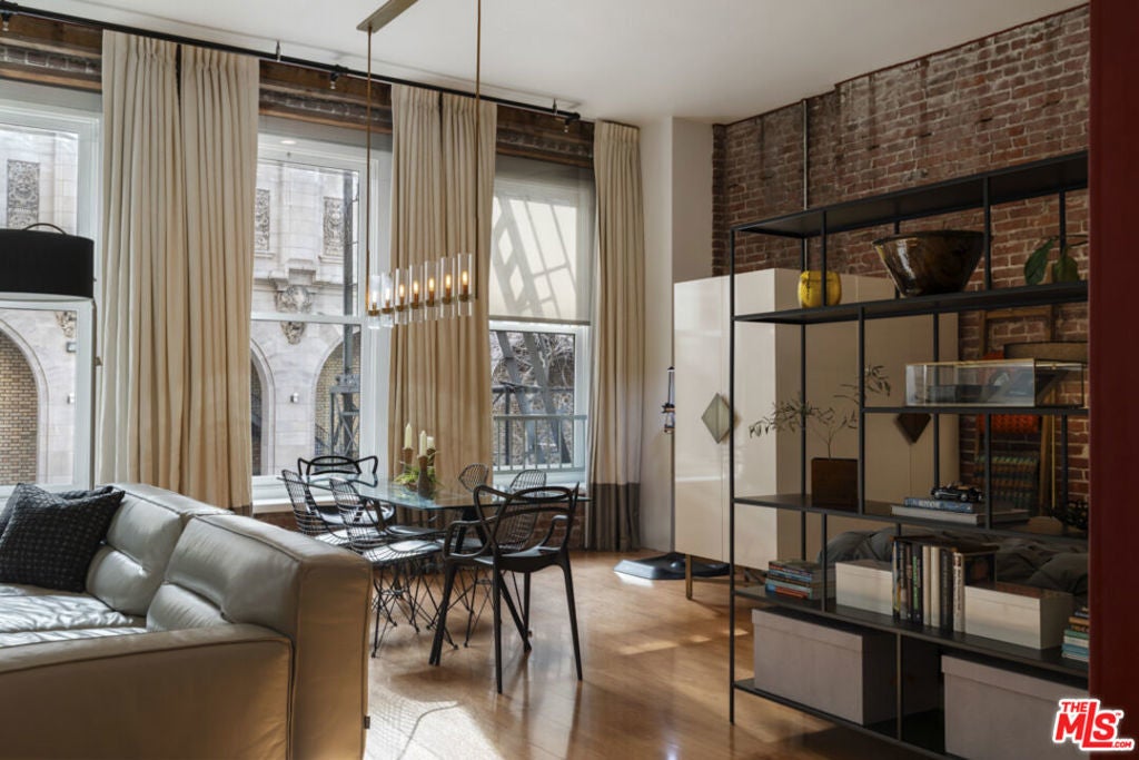 A rare offering at the iconic Pan American Lofts, this beautifully renovated open-concept 1-bedroom blends historic grandeur with refined modern design. Built in 1897 and designated an L.A. Historic Cultural Monument, this intimate 40-unit Beaux Arts community qualifies for the MILLS ACT, offering significant property tax savings which helps offset the monthly HOA dues. Inside, 11' ceilings, original exposed brick, and oversized windows flood the space with natural light. The fully renovated chef's kitchen features custom cabinetry and high-end (Viking & Wolf) stainless steel appliances, while the redesigned bath delivers a clean, spa-like aesthetic. The open layout enhances the loft's scale and flexibility for live/work living. Conveniences include in-unit laundry, controlled entry, a community interior courtyard lounge area, and a prime parking spot in the secured on-site parking garage. Ideally located at 3rd & Broadway, the home is directly across from Grand Central Market and moments from the Bradbury Building, Metro, Little Tokyo, and DTLA's best dining and culture. HOA dues include water, gas, sewer, trash, high-speed internet, and premium cable (Spectrum + HBO).