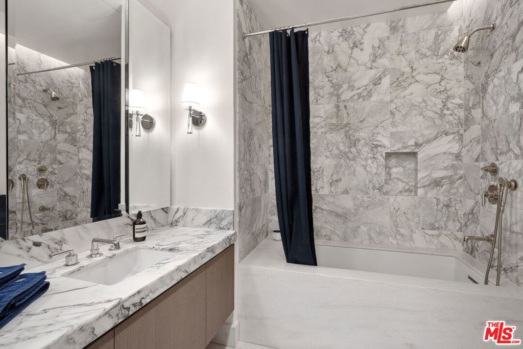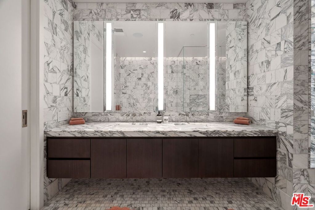 Immerse yourself in luxury at The Sun Rose West Hollywood (formerly Pendry Residences), a 24-hour full-service amenity building, located on the iconic Sunset Strip. Residence 307 offers unparalleled privacy with breathtaking south-facing Downtown LA views. Serene and sophisticated, the home exudes an opulent ambiance with wide plank white oak flooring and floor-to-ceiling glass walls that bathe the space in natural light. The chef's kitchen, designed by Martin Brudnizki, is the perfect blend of functionality and elegance equipped with top-of-the-line Subzero and Wolf appliances, custom white oak stained cabinetry, Waterworks fixtures, and an oversized Calacata Borghini marble island. The generously sized primary suite is a haven of luxury, featuring a Poliform walk-in closet with custom millwork doors, and a marble spa-like bathroom with custom double vanities and high-end polished chrome fixtures. A guest bedroom is replete with a built-in office area with custom millwork desk and shelving, along with a fully renovated en-suite bath with new cabinetry, honed Arabescato Corchia counter, and honed Arabescato Argento tiles. Completing the residence is a stunning powder room, laundry room, ceiling speakers throughout with Sonos control, custom high-end lighting, Nest thermostats, direct access via elevator into the private vestibule with new blue honed marble floors, and two side-by-side parking spaces equipped with a triple charger. The Sun Rose Residences offers a range of residential amenities, including 24-hour concierge and security services, valet parking, a state-of-the-art fitness center, a resident lounge, a tranquil garden deck, a rooftop pool, and services of Sun Rose Hotel.