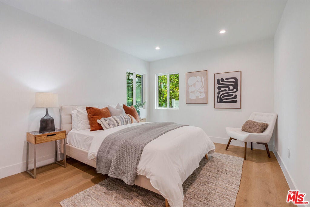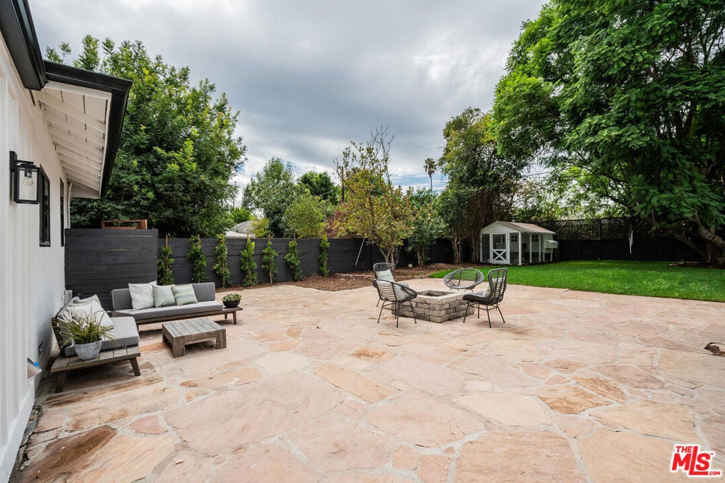 This stunning remodel is located in the much sought after Midvale Estates. Nestled behind elegant wrought iron gates, the front porch sets the tone for its inviting interior. Upon entry, you'll be captivated by the sunlit ambiance, and rich wood flooring throughout. The chef's kitchen is a true centerpiece, boasting a large stone-accented center island with a built-in sitting area, brand-new cabinetry, and top-of-the-line stainless steel appliances. It seamlessly flows into a step-down family room, complemented by a guest bathroom, pantry, and a dedicated laundry room. The luxurious primary suite offers a spa-inspired bathroom and a spacious walk-in closet. Additional highlights include a generously sized secondary bedroom, plus a versatile den/office with a closet, and another beautifully appointed full bathroom. Step outside to an expansive backyard oasis, ideal for al fresco dining and entertaining. Enjoy a lush lawn, fruit trees, a cozy firepit, a charming chicken coop, and ample space to add a pool. Conveniently located near popular dining spots, shopping centers, Lake Balboa, three golf courses, scenic bike paths, and public transportation, this exceptional property is truly a must-see.