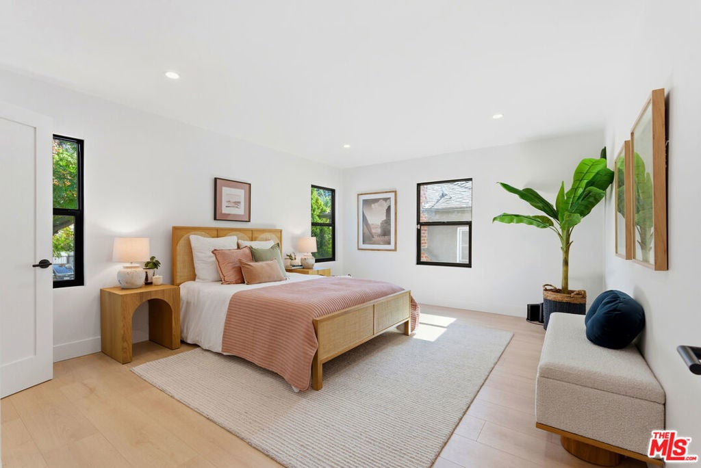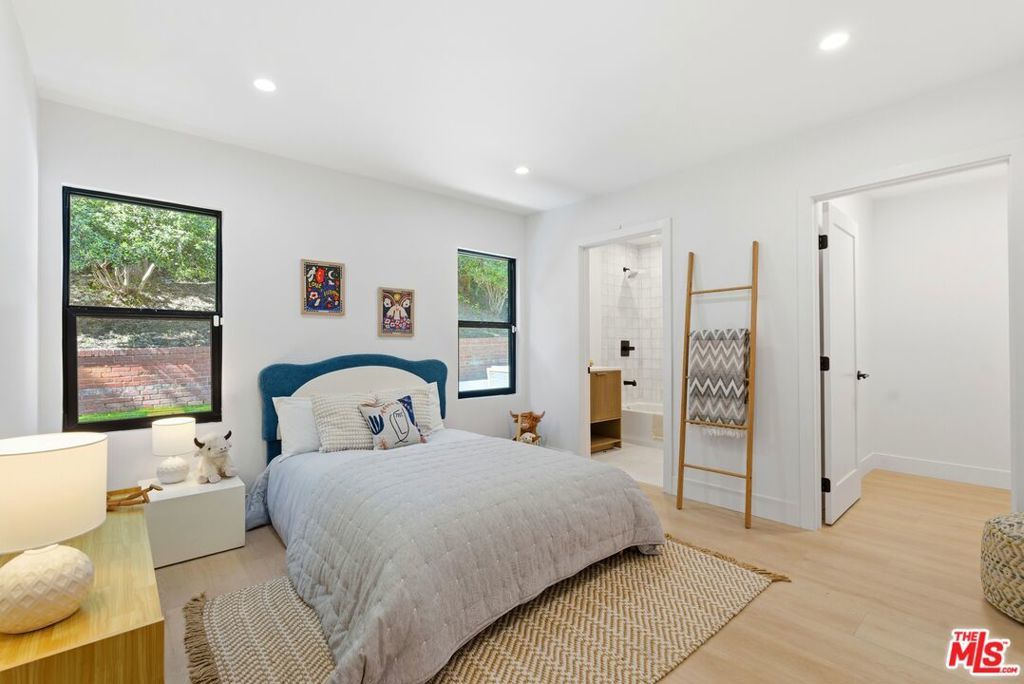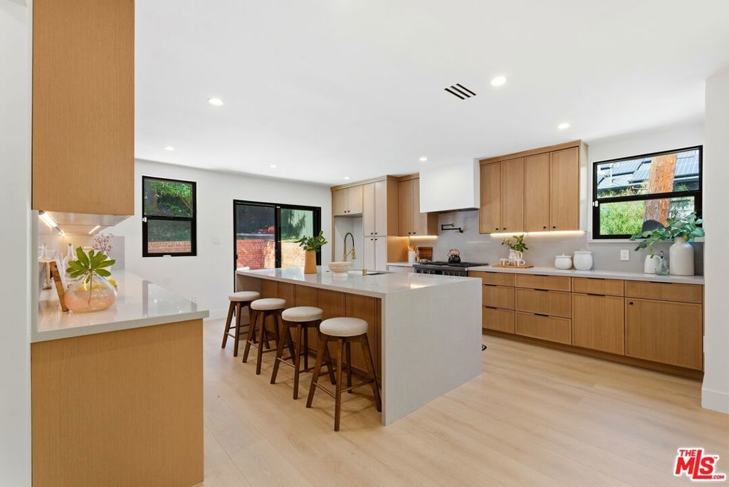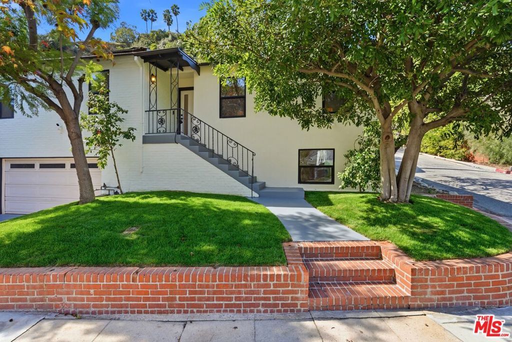 Stylish, sophisticated, and effortlessly cool, this beautifully remodeled Beachwood Canyon home is perched on a corner lot along a picturesque, tree-lined street in one of Hollywood's most coveted neighborhoods. Owned by the same owner for 23 years, the home has been thoughtfully remodeled with a chic, modern aesthetic while preserving its original warmth and charm. The top floor features an open-concept layout with expansive windows showcasing a lush tree backdrop. The custom kitchen is outfitted with warm wood cabinetry, sleek countertops, modern hardware, and a striking waterfall-edge island, perfect for entertaining and everyday living. Designer lighting and contemporary fixtures complete the curated aesthetic, and a convenient washer and dryer are located on the top level for effortless daily living. Three bedrooms are thoughtfully designed, each with its own bathroom. The centrally located primary suite features a cozy fireplace and two closets, offering both comfort and ample storage. The bathrooms feature stylish tilework, custom vanities, and modern fixtures, creating a spa-like atmosphere throughout. The lower level offers a versatile bonus space with its own half bathroom, ideal for a creative studio, home office, playroom, or guest suite. Direct access to the garage provides additional flexibility for storage. The outdoor area is perfect for entertaining, or future expansion. Just blocks from Brush Canyon Trail, enjoy easy access to hiking and nature while remaining moments from cafes, restaurants, boutiques, shopping, and everyday conveniences. This Beachwood Canyon gem is ready for its next chapter and new memories.