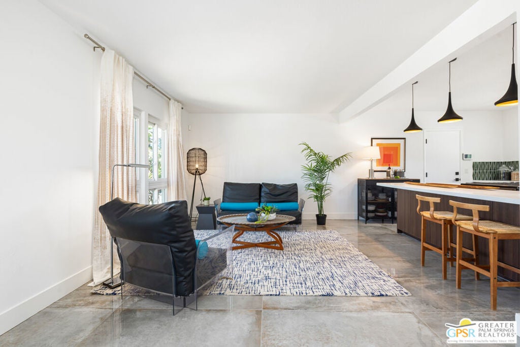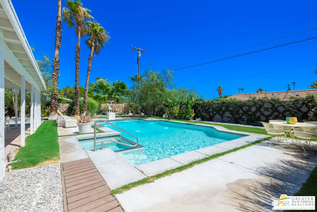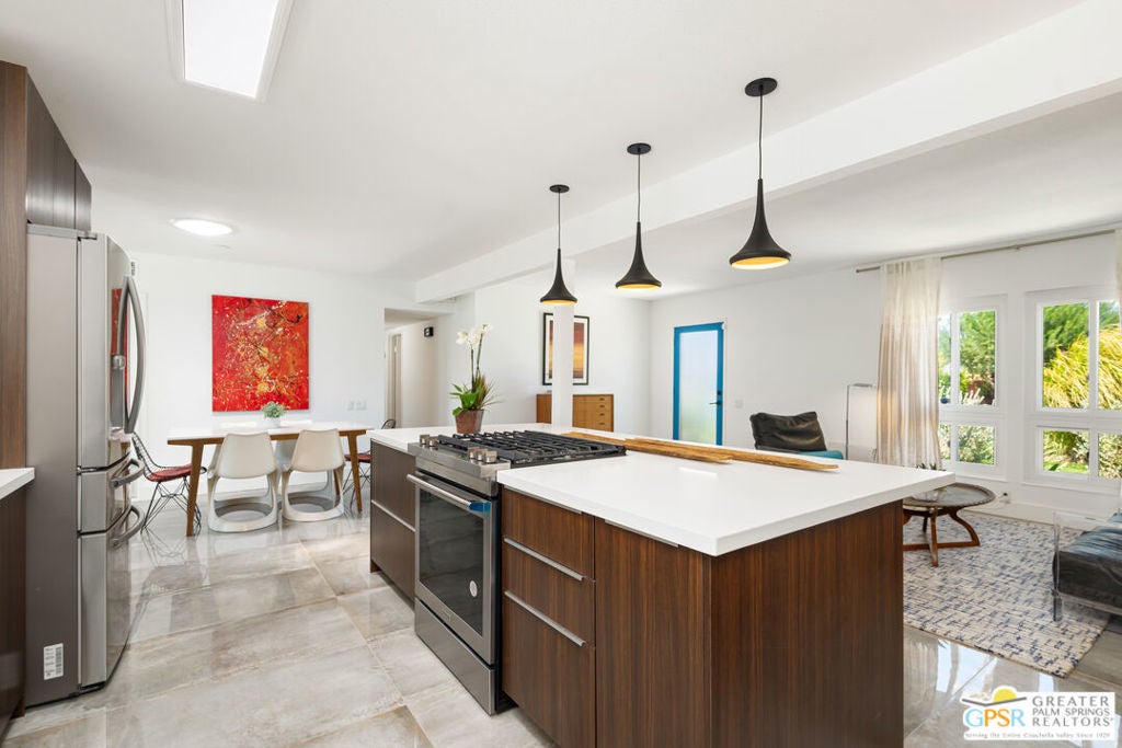 This reimagined mid-century gem is where chic design meets Palm Springs cool. Completely transformed with a bold, modern Marrakesh-inspired vibe, this 3-bedroom, 2-bath stunner (1,584 sq. ft.) plus a cozy den is your ticket to effortless desert living. The heart of the home? A sleek chef's kitchen decked out with stainless steel appliances, crisp quartz countertops, and a spacious island that practically begs for cocktails and conversation. The open layout flows right into the living and dining spaces, with stylish tile flooring and solar tubes flooding the space with natural light. And that den? It's the perfect bonus spacewhether you're working from home, creating your own studio, or just curling up with a good book, the possibilities are endless. But let's talk about your oasis. Step outside and soak in those killer south-facing mountain views from your private pool and spa, surrounded by lush landscaping. Whether you're lounging under the covered patio or catching rays in the sunshine-drenched backyard, every moment feels like a mini vacation. The primary suite has been expanded to give you even more room to relax, and with fresh paint inside and out, this home is truly move-in ready. It's got the vibe, the views, and the vibe again, so Why Aren't You living Here Yet?