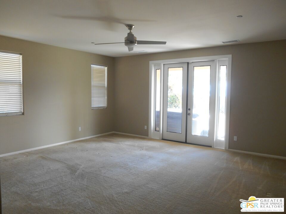 Spacious home located in a small gated community in north Desert Hot Springs. Beautiful mountain views. Over 2600 sqft , perfect for entertaining. 2 Bedrooms and a jack and jill bath at one side of home and large primary bedroom at opposite side with a great bath and walk-in closet. Great room with fireplace, formal dining, upgraded quartz counters in kitchen. There's room for a pool in the rear yard. 3 car attached garage.