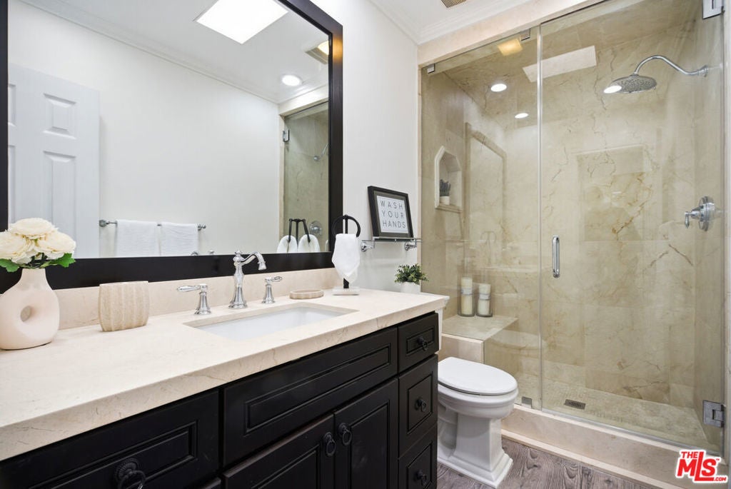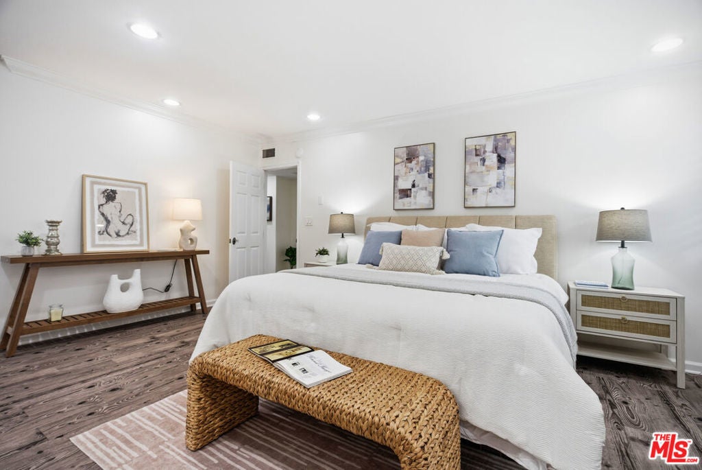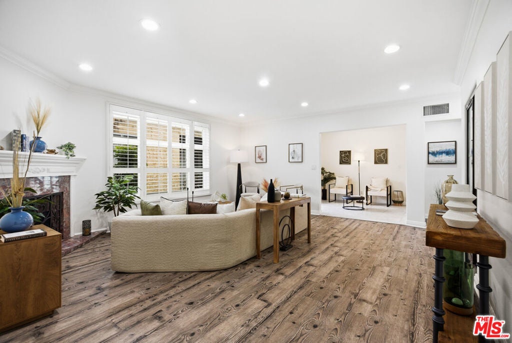 Gorgeous 2-bedroom, 2-bath upper-level condo in an intimate two story building, centrally located in a prime Santa Monica neighborhood. A flexible bonus area off the entry is ideal for a home office, gym, or den. The updated kitchen, double-pane windows, and new in-unit washer and dryer offer comfort and convenience. The living area features a covered balcony extending off the foyer, decorative fireplace, and central heat/air for year-round comfort. Both bedrooms offer generous closets with built-ins, with additional storage in the living area. The primary suite includes an en-suite bath with hot tub. Situated in a quiet seven-unit building, the property includes one covered parking space. In close proximity to a variety of fine grocery stores, restaurants, coffee shops, art galleries, and the beach. Conveniently near Brentwood, Westwood, and Venice. Located within the Santa Monica-Malibu Unified School District. Buyer to verify school boundaries, enrollment availability, and district lines.