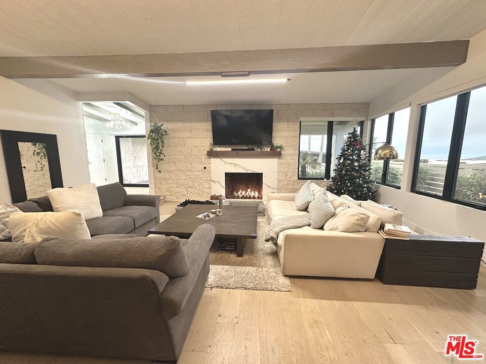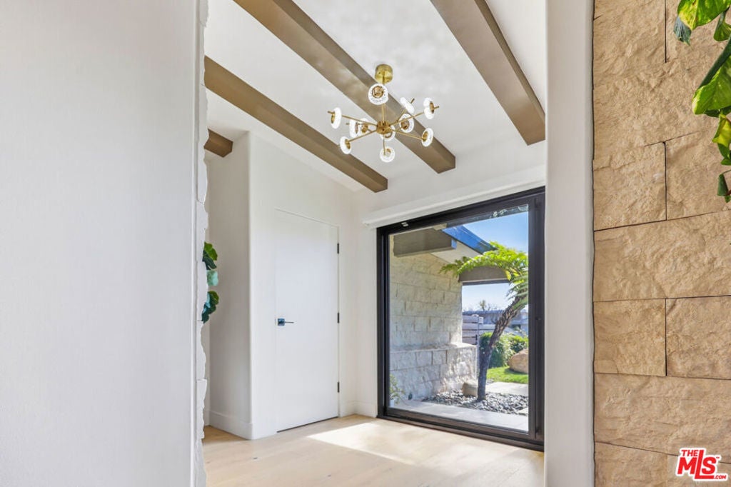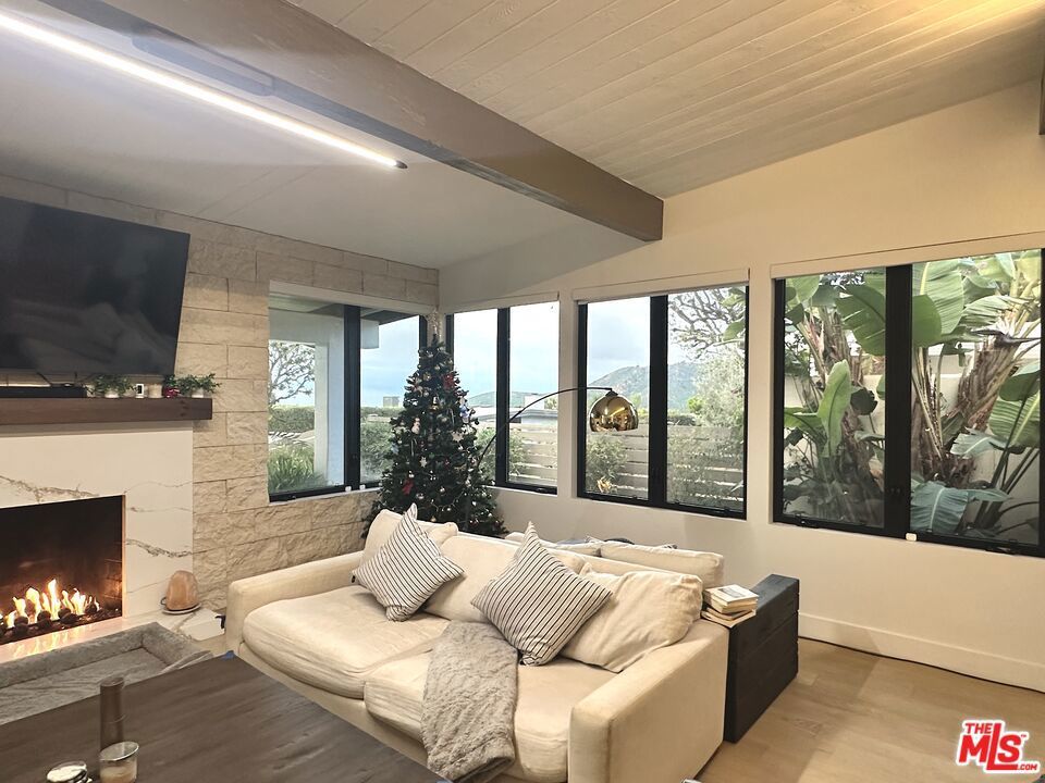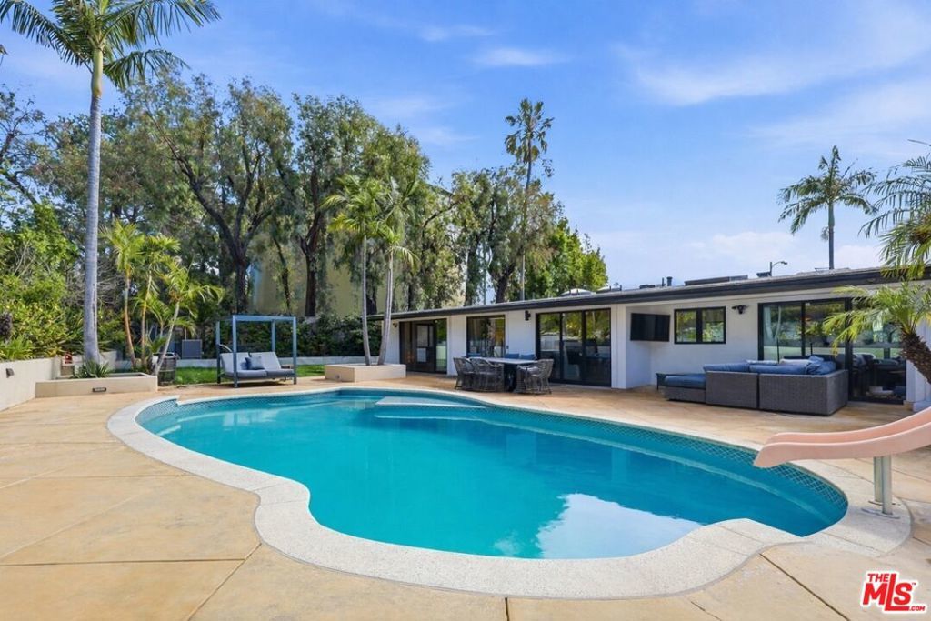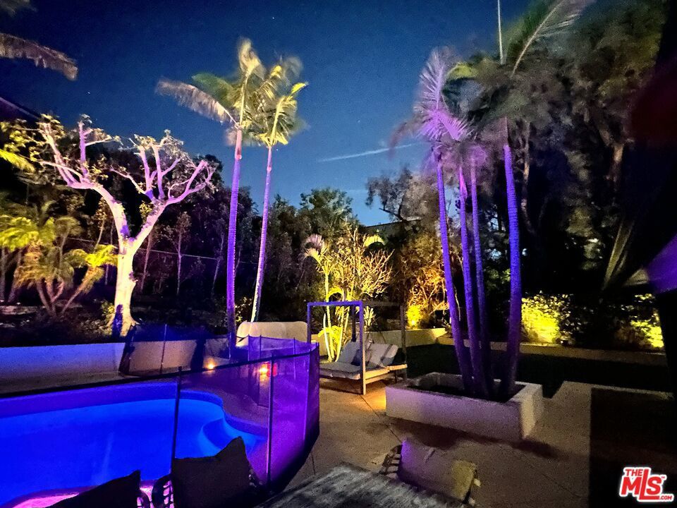 Perched at the top of prestigious Marquez Knolls on a quiet cul-de-sac in a highly regarded neighborhood, this fully renovated (August, 2023) mountaintop retreat sits on a large 11,687SF lot and offers rare privacy, security, and ocean and mountain sunset views. The pool and spa have been recently upgraded with a pebble-finish replaster, refreshed tile, LED color lighting, enhanced filtration system, redesigned skimmer box, and updated drains, further elevating the home's resort-style appeal. This home, along with all other homes on the cul-de-sac, was not structurally damaged by the Jan,2025 wildfires. Elevated above the coastline, the home captures fresh ocean air, dramatic Pacific sunsets, and serene mountain surroundings. Designed for seamless indoor-outdoor California living, with high 10+ foot beamed ceilings and warm white oak wood floors that flow throughout light-filled interiors that open to expansive tropical front and rear yards. Multiple outdoor entertaining and workspace areas make it ideal for executives working remotely, families seeking space, or anyone looking to escape congestion while remaining minutes from the beach, hiking trails, and Lake Shrine. The property offers exceptional privacy and security, complete with a Ring alarm monitoring system, video doorbell, and floodlight cameras. The grounds are enhanced by updated wood-paneled fencing with iron posts and integrated LED lighting, complemented by thoughtfully redesigned landscaping featuring bamboo, fruit trees, lush greenery, and Mexican beach pebbles elegantly woven throughout. Generous driveway and street parking provide added convenience for guests. Interior features include an updated en-suite primary room complete with a spa-inspired wet room featuring dual rainfall showerheads, a soaking tub, heating fan, and TV. Additional highlights include updated dual-pane aluminum casement windows and multi-slide doors, 41SF glass-iron pivot door, an in-line Thermador built-in espresso machine with fresh-ground capability, Viking appliances, water filtration system with reverse osmosis and alkaline treatment supplying the pot filler and smart LG ThinQ refrigerator (with additional spherical craft ice maker), custom cabinetry and creative mines sanddollar exterior/interior stone features. The home also offers six LCD TVs throughout, a gas fireplace, automated shades, heated toilet seating with integrated bidet, wine rack, wine refrigerator, tankless hot water, Tesla EV charger, smart washer, dryer and dishwasher, and an additional refrigerator in the garage. Additional smart-home features include updated MyQ garage door, integrated lighting controls, Nest thermostat, Hyve irrigation system, landscape lighting, and an iAquaLink pool system. The spacious yards provide ample room for children or pets to enjoy. A dedicated private home/garage gym featuring a treadmill, TV, Olympic free weights, dumbbells, kettlebells, multi-functional adjustable weight bench with preacher curl and leg extension attachments, inversion table, and multi-functional adjustable weight bench, creates a turnkey wellness environment. Quiet. Secure. Elevated. This residence offers a rare combination of safety, luxury, and coastal mountain living. **Listing Price is for Unfurnished. Fully furnished option available. Lease to Buy Option also available.