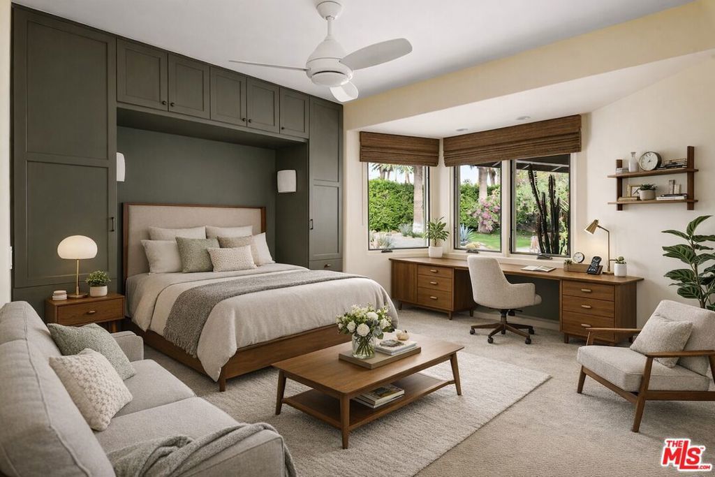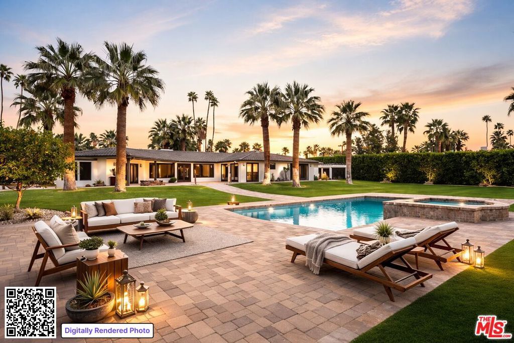 Discover the height of Palm Springs luxury in this extraordinary estate, once graced by the Rockefeller family. Located in the prestigious Old Las Palmas enclave, this six-bedroom, nine-bath residence seamlessly blends historic significance with elevated modern living. Set on a full acre with breathtaking mountain views, the property offers exceptional privacy just moments from downtown Palm Springs' renowned dining, shopping, and entertainment. The estate functions as a true private compound, featuring a beautifully appointed one-bedroom guest house and an impressive Pool House complete with a wet bar, dry sauna, kitchen, indoor BBQ, fireplace, and vaulted ceilingsideal for grand-scale entertaining. An elegant outdoor dining pavilion and lush, impeccably landscaped grounds create a serene desert oasis. Inside, refined interiors balance timeless elegance with contemporary comfort, offering expansive living spaces and luxurious bedroom suites designed for both relaxation and entertaining. With its storied pedigree, prime location, and rare scale, this Old Las Palmas estate is a remarkable opportunity to own a piece of Palm Springs history.