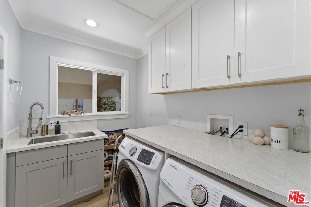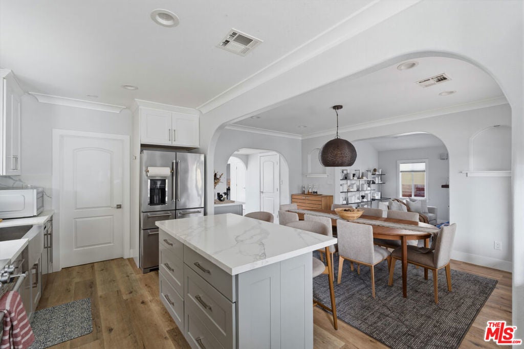 Beautifully renovated Spanish-style residence in the heart of Mid-City, offering timeless character, meaningful system upgrades, and long-term potential. Located just minutes from downtown Culver City and one mile from the Metro E (Expo) Line, the home provides convenient access to dining, shopping, and major commuter routes. Extensive infrastructure improvements set this property apart. The home features a brand-new foundation with seismic bolting, replacement piers, and new concrete footings. A new Lennox HVAC system with a 20-year heating unit warranty and WiFi-connected thermostat ensures modern comfort and efficiency. Additional upgrades include copper plumbing, a 200-amp electrical panel, tankless water heaters, updated AC ducting, fresh interior paint, and newer flooring. Outdoor systems have been thoughtfully enhanced with new drainage and a WiFi-connected, weather-smart irrigation system, along with a newly installed bioswale for improved water containment. The backyard showcases drought-tolerant, no-mow Kurapia ground cover designed for sustainability and low maintenance. Inside, the layout is both functional and flexible, featuring a welcoming living room with fireplace, a defined dining area, and a remodeled kitchen with quartz countertops, modern cabinetry, generous storage, and KitchenAid stainless steel appliances. A dedicated laundry room with custom cabinetry and sink adds everyday convenience. A spacious family room offers versatility as a media room, playroom, or potential fourth bedroom. The primary suite is privately positioned and includes a spa-style bathroom with direct access to the backyard, while two additional bedrooms are well-sized and filled with natural light. The detached garage (about 338 sqft), combined with LARD2 zoning, presents valuable upside potential for an ADU or future multi-unit development (buyer to verify), adding investment appeal to this move-in-ready home. Centrally located near West Adams, Picfair Village, and the 10 Freeway, this property places you within easy reach of Santa Monica, Downtown LA, and surrounding Westside neighborhoods. A rare opportunity to own a thoughtfully upgraded home with expansion potential in one of Los Angeles' most connected communities. Please note the fireplace is decorative only. 2 Full bath +1 Half. Square footage is approximate. Buyer to independently verify the accuracy of all measurements and property information during their investigation period.