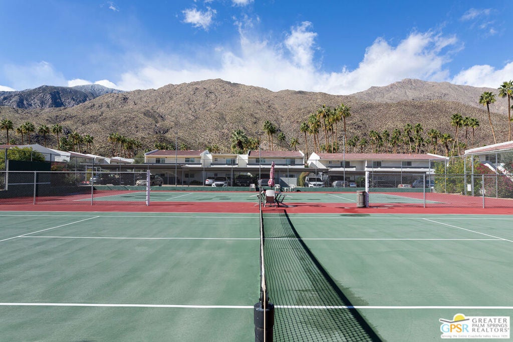 Your 3 Bedroom condo on Fee Land with panoramic mountain views in South Palm Springs is here. Come take a look in this gated community at the updated condo with recent remodeled kitchen and Baths. All 3 bedrooms are ample sized. Two bedrooms will easily accommodate a king size bed. Your private balcony runs the entire length of one side of the unit roughly 45 feet with access on either end. What a great space to relax, meditate or enjoy your morning coffee. The kitchen is open enough you can add a work island or chopping block, with great counter space for food prep or serving. There is even a walk in pantry/closet or work office space with ceiling fan off the hallway. The best part is the views out over the tennis courts to the south facing mountain range, mesmerizing views. The windows and sliding doors are dual-pane to help reduce noise and conserve energy. The assessor shows the unit to be 1472 square feet which is larger than some homes. The community also includes 4 pools and 2 spas, there is a great gym/exercise area available plus a pool table room with table tennis too. Full size tennis courts are ready if you need more room than a table top. The low HOA fees include gas, trash and sewer along with exterior maintenance of the buildings and landscaped grounds. Included with the unit are 2 reserved parking spaces one being covered. The condo is Ideal for a full time lifestyle or seasonal. Now come and enjoy.