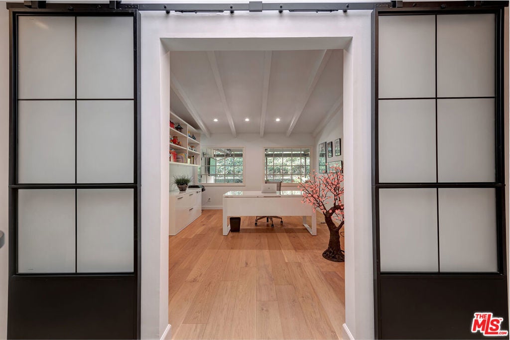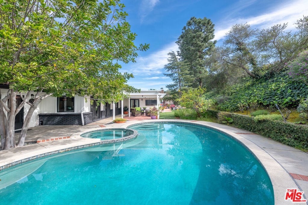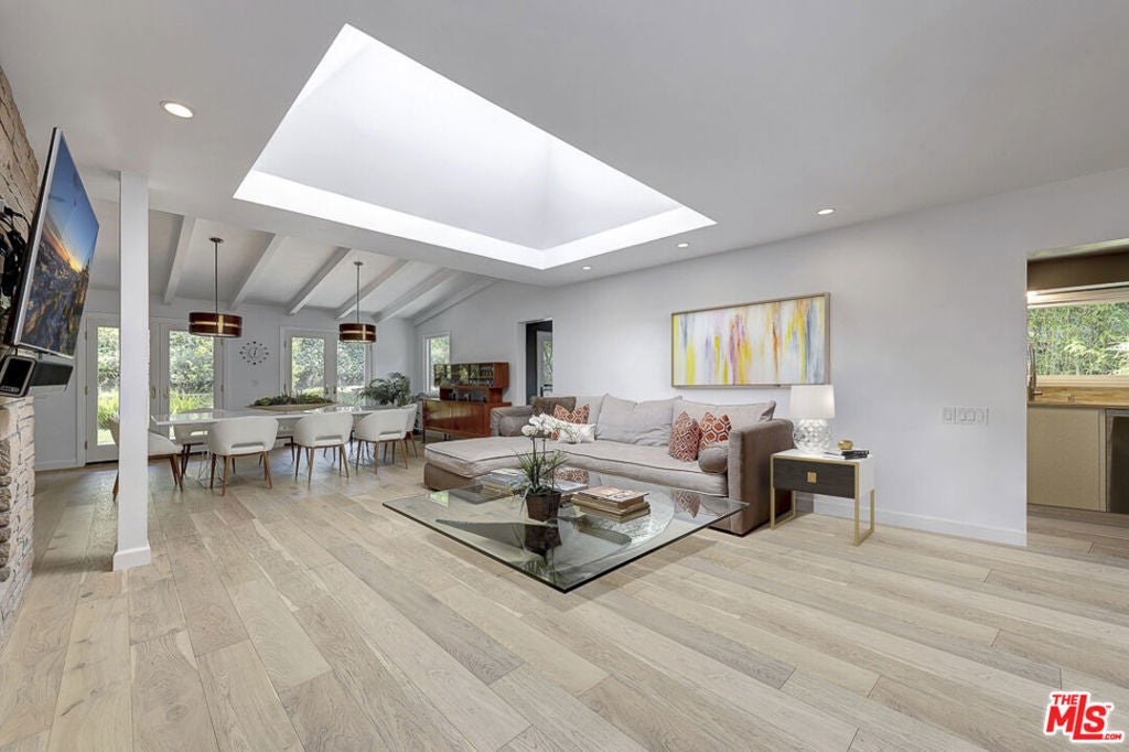 Unmatched value meets modern luxury in this reimagined Mid Century Ranch masterpiece. With over $300k in renovations, this stunningly updated showplace in coveted Royal Woods is a rare find. Perfectly situated on prime Meadowcrest Road near Mulholland, this single level estate offers a sophisticated lifestyle for those ready to move in and immediately enjoy the good life. Step inside to discover a bright, airy sanctuary defined by soaring ceilings, sun drenched skylights, and wide plank French white oak floors. The seamless open floor plan flows from a grand great room anchored by an Arizona stone fireplace to a refined living and music area. The spacious dining room, featuring solid pane French doors, opens directly to a private backyard oasis complete with a covered outdoor living room, water wise turf, and a sparkling pool and spa. The thoughtful layout includes a four bedroom center hall wing where every bathroom has been tastefully updated. The primary suite serves as a true retreat with its spa-caliber bath and walk in closet, while the fourth bedroom features stylish barn doors perfect for a modern home office. Additionally, a separate fifth bedroom suite with its own private entrance offers the ultimate flexibility for a guest wing or a secluded professional workspace. The heart of the home is a chef's kitchen boasting quartz counters, premium stainless appliances, and a charming breakfast nook. Beyond the main living areas, the home is equipped for the future with a 40 panel solar system for maximum energy efficiency. An oversized 2.5 car garage provides extra workshop space and is currently utilized as a vibrant game room. Located just minutes from the Westside, this exquisite estate combines modern amenities with timeless character. Come experience the magic of Meadowcrest Road today. PRICED TO SELL!