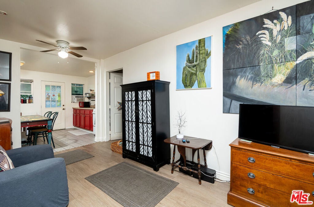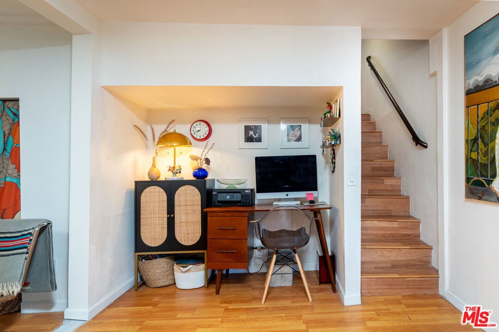 Welcome to 1556 Rollins Drive! This home is currently being used as a multi-unit family home filled with character and nestled in the vibrant heart of City Terrace Los Angeles. This unique property offers an exceptional opportunity for both owner-users and investors alike. Built in 1926, this gem is thoughtfully designed to accommodate modern living while preserving its timeless appeal. The main unit on the upper level features 2 spacious bedrooms and a full bathroom, providing a comfortable and inviting living space. (The 2nd bedroom has been opened to the living room but can easily be closed off again if you prefer 2 true bedrooms) The kitchen is equipped with a brand-new ZLine stove, perfect for culinary enthusiasts, and opens to a bright and airy floor plan. Enjoy the hardwood style flooring that flows seamlessly throughout the living areas and in-unit laundry. The lower level hosts a separate 1-bedroom, 1-bathroom unit with its own private entrance, offering the ultimate in privacy and versatility. This unit has high ceilings and has been updated with new kitchen floors and a modern shower, making it an ideal rental space or guest suite. Both units have great natural light and benefit from upgraded plumbing and electrical systems, completed in 2013, and some newer windows that enhance energy efficiency. The home is equipped with solar panels, ensuring sustainability and cost-effectiveness. Step outside to discover a large entertainer's deck and private patio, both offering breathtaking views of the Pasadena and Angeles mountains. Whether you're hosting family gatherings or enjoying a peaceful evening under the stars, this outdoor space provides the perfect backdrop. Located near Cal State Los Angeles with easy access to the 710 and 10 freeways, near 2 railway stations (the E line to Culver City/Santa Monica and the San Bernardino line) as well as many bus stops...this property is just minutes from Downtown LA, shopping, entertainment, and fine dining. Don't miss the chance to own this extraordinary property with gorgeous and tranquil unobstructed views. Vacant at close of escrow!