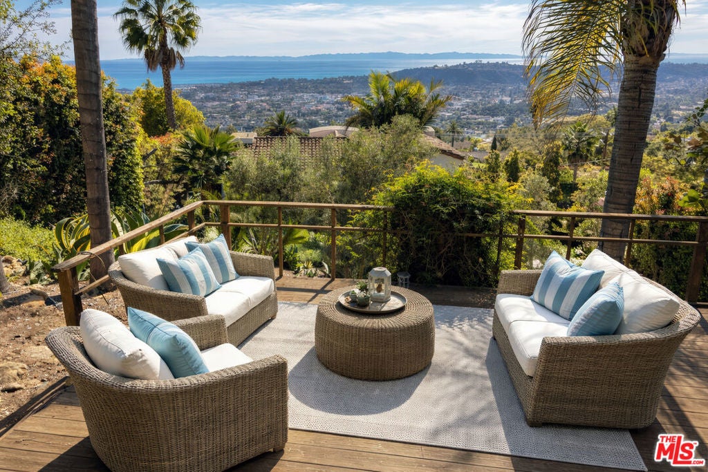 Enjoy life on the American Riviera in this playfully reimagined home with Gaud-inspired curves and signature David Shelton ironwork. Seductive south-facing views bring inspiring Pacific Ocean scenery, soothing sunsets, and romantic city lights into the living spaces. Located in one of the Riviera's most prestigious neighborhoods, moments from the El Encanto Hotel, the iconic Santa Barbara Mission, the home makes a striking first impression blending vibrant gardens, whimsical character with the soulful spirit of Santa Barbara. A dramatic Spanish-inspired entry ascends to the light-filled great room with soaring ceilings, large picture windows and Juliet balconies showcasing ocean & city views. The home offers 3 bedrooms, 3 baths with a mezzanine floor ideal for a home office or studio. The magical back yard features private botanical gardens with meandering paths, bountiful fruit trees and level terraces with inspiring vistas providing a perfect spot for daily relaxation or an artistic haven.