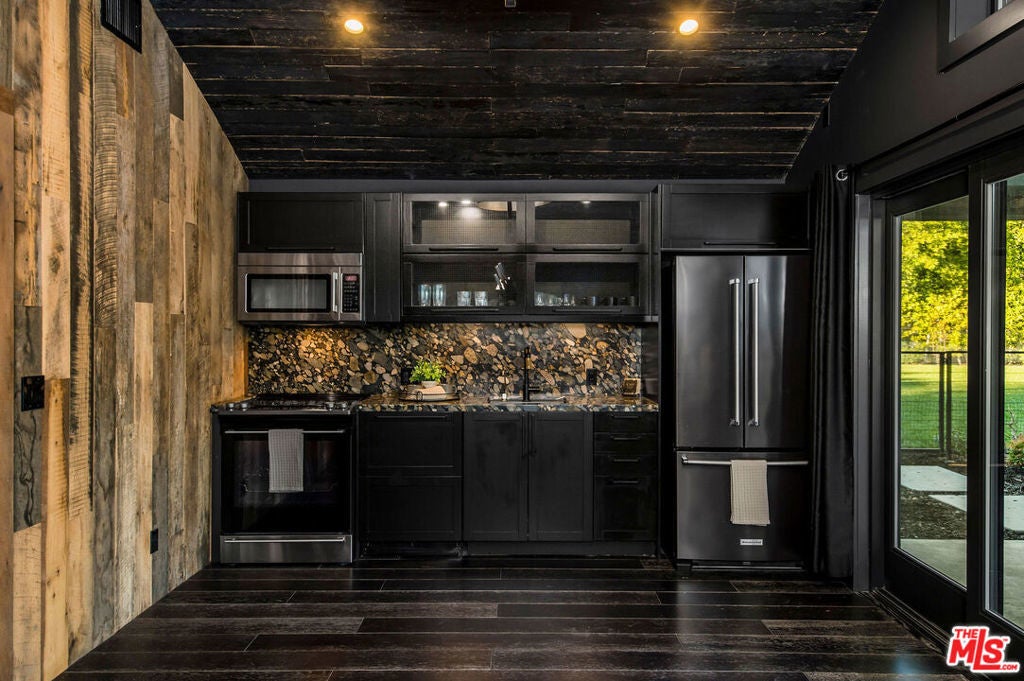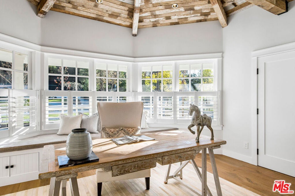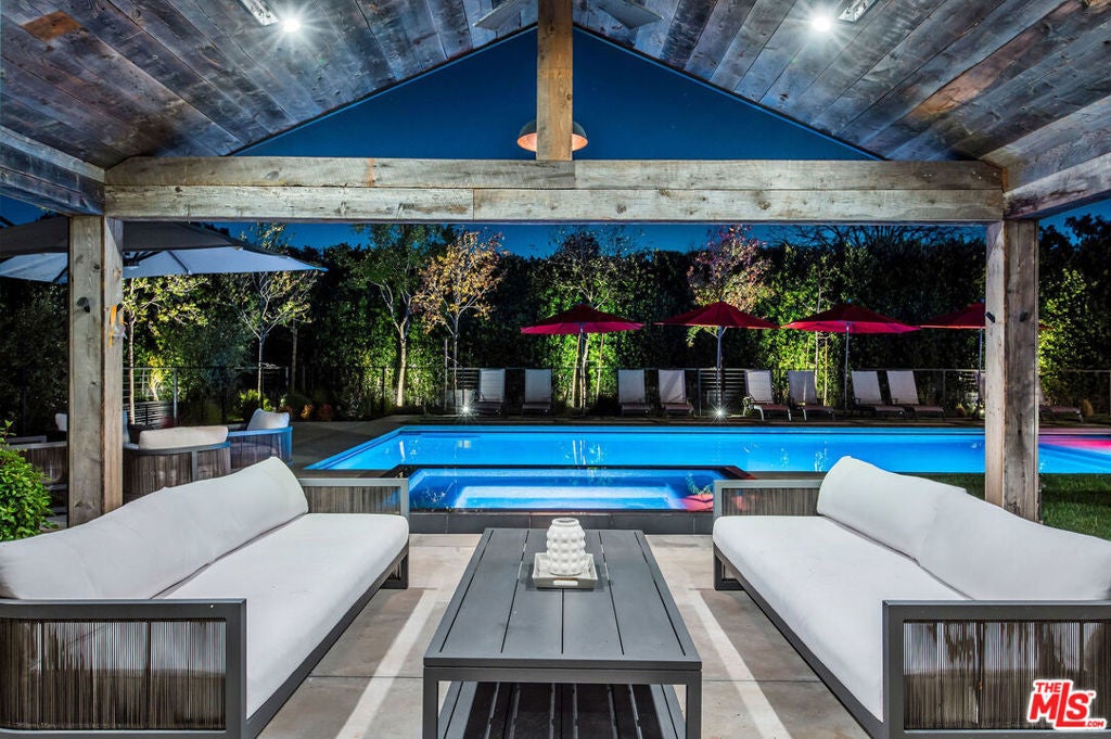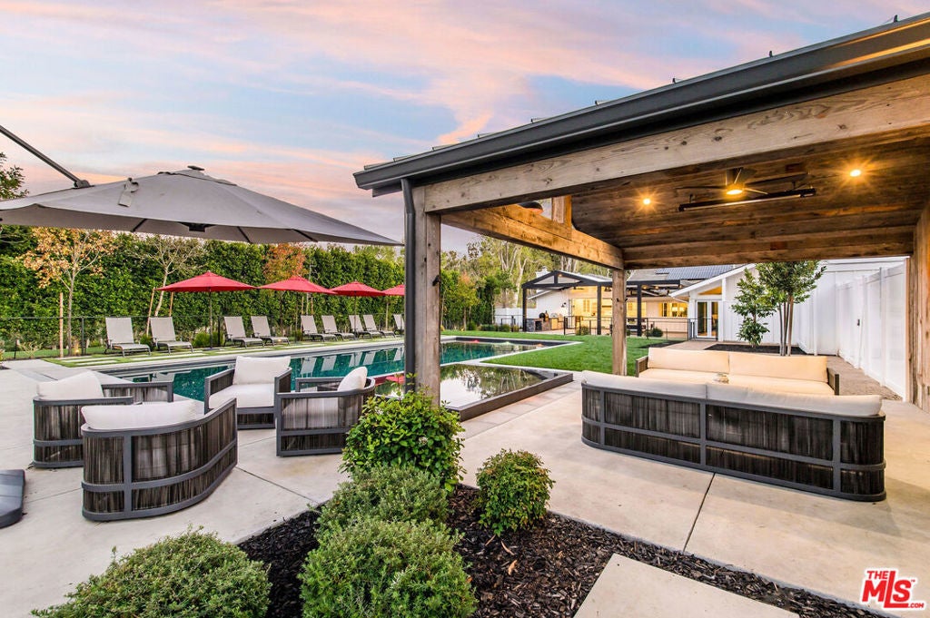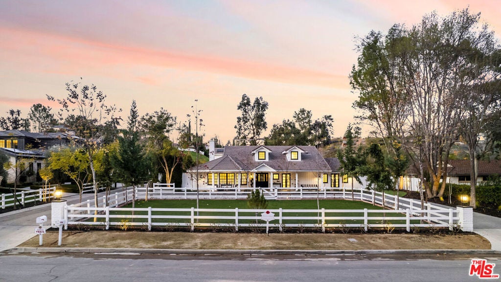 Located within the prestigious guard-gated community of Hidden Hills, this refined farmhouse awaits. Situated on a premier cul-de-sac street, this 7 bedrm, 9 bath ranch compound will not disappoint. As you approach, an inviting covered veranda welcomes you. Once inside the meticulously designed, open concept interior resonates a harmonious blend of natural materials including wide plank wood floors, French doors, and exquisite artful wall accents, creating an ambiance of unparalleled tranquility and comfort. The heart of the home is a generously sized great room and adjacent Chef's center island dream kitchen complete with top-of-the-line professional Stainless Steel appliances, Water Works designer faucets, one of 5 warming fireplaces and cozy breakfast area. A statement fireplace and a wall of retractable glass doors accentuate the sublime dining room ensuring an unforgettable dining experience and effortlessly integrates the much sought-after Southern California indoor/outdoor experience. The intimate living room offers a quiet retreat, perfectly suited for a glass of wine with friends or meditation. The sun filled primary bedroom and resort-inspired bathroom is a sanctuary within itself, featuring an oversized shower, soaking tub, dual water closets, custom walk-in closet and zen inspired garden patio. Three additional ensuite bedrooms complete the main bedroom wing, plus a second floor "dream come true" ensuite bedroom, bath,living room, built-in kitchenette and breakfast nook. Private lush grounds surround this idyllic residence and include an inviting swimmer's pool with zero-edge spa, patio with outdoor cooking station and multiple verandas. Additional living structures include a 1+1 guest cottage with private access and a detached guest house complete with living area,full kitchenette and poolside covered patio, ideal for guests, a private office, or possible recording studio. The private lushly landscaped grounds provide ample space for a barn, possible sports court or added grassy play area. Recognized as one of Southern California's most coveted gated communities Hidden Hills offers 35 miles of winding horse trails, community theatre and weekly Farmers Market. Beyond its immediate surroundings, Hidden Hills is conveniently located to The Commons of Calabasas, minutes from the Topanga Westfield Mall and The Village offering choice dining eateries, high end shopping and entertainment options. Hidden Hills is serviced by the nationally acclaimed Las Virgenes School District.