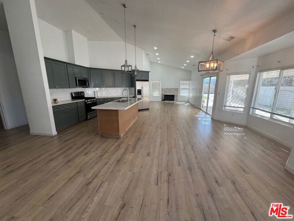 This turnkey stylish completely remodeled-single story home is located in the city of Palmdale. Located towards culdesac. The home features 3 bed 2 bath. Over1,600 sqft. As you walk-in this "Inviting" open floor plan , you see the remodeled kitchen which surrounds a large beautiful breakfast bar with custom pendant hanging lights. The kichen cabinets have plenty of storage. The home has nice sized windows throughout. The living-room has a brick fireplace that is just perfect for those cozy nights. The large secluded primary bedroom suite has alot to offer, it has a beautiful elegant french door which takes you to the ample pool size back yard that is over 7,762 sqft lot ,that is just perfect for those family and friends gatherings. The master has a nice sized walk-in closet. Each bathroom has been remodeled completely with custom modern vanities, new lights fixtures, upgraded shower etc. The additional bedrooms have mirrored upgraded closets. This home has alot to offer , plus includes all appliances! The home is near everything. There NO HOA. This home also qualifies for a GRANT of $20,000 with only a 3% Down Payment (buyer must meet certain requirements). Look no further.