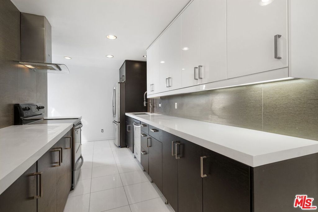 Enjoy spectacular views in the heart of West Hollywood from this stunningly remodeled penthouse with a spacious floor plan featuring two bedrooms and two bathrooms. This southwest corner unit on the top floor has sleek, modern finishes throughout including a washer/dryer inside the unit, gorgeous maple-colored hardwood floors, recessed lighting, dual pane windows, Caesarstone counters, walnut La Cava bathroom vanities, and Artemis ceiling fan. This home owner's dream has tons of closet space, a large south-facing sunny balcony, and a sensational kitchen with European cabinets and stainless appliances, including a top of the line LG washer/dryer. Enjoy energy efficient central heating and cooling with a Nest thermostat. Park your cars in the building's secure subterranean garage and you're just steps away from nearby restaurants (WeHo Bistro, Dialog Cafe) shopping (Trader Joes, CVS) and fitness clubs (Equinox, John Reed). Hurry, this one won't last!
