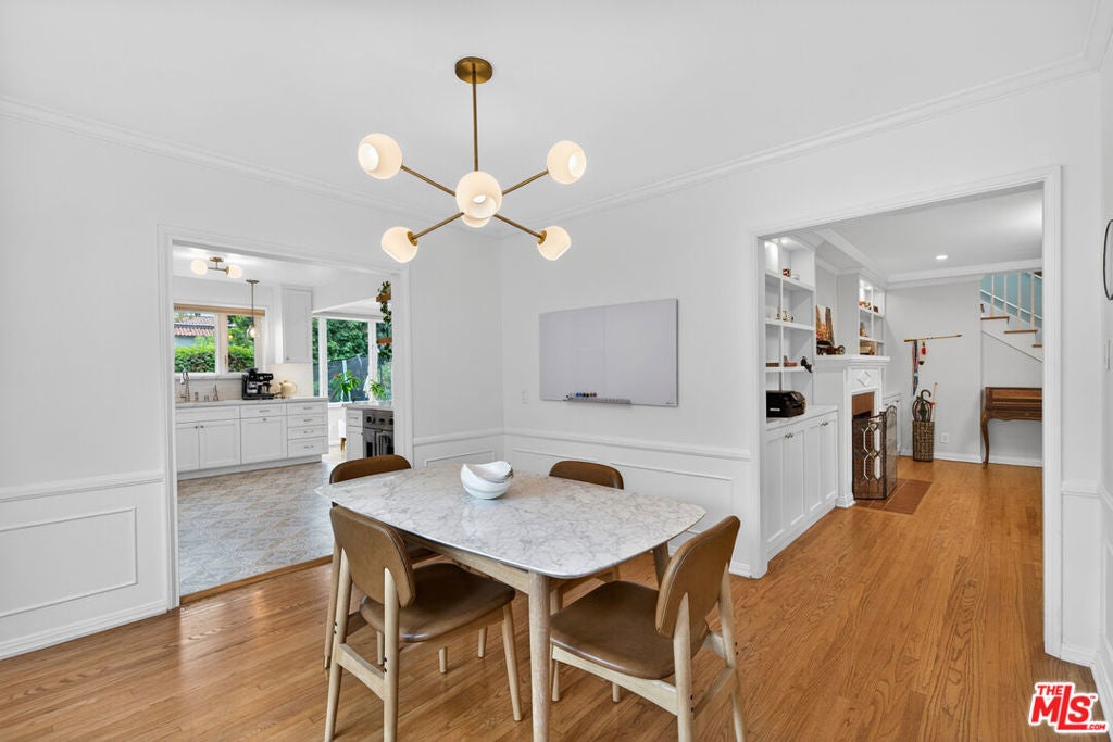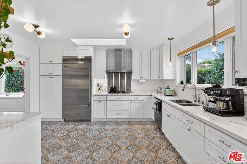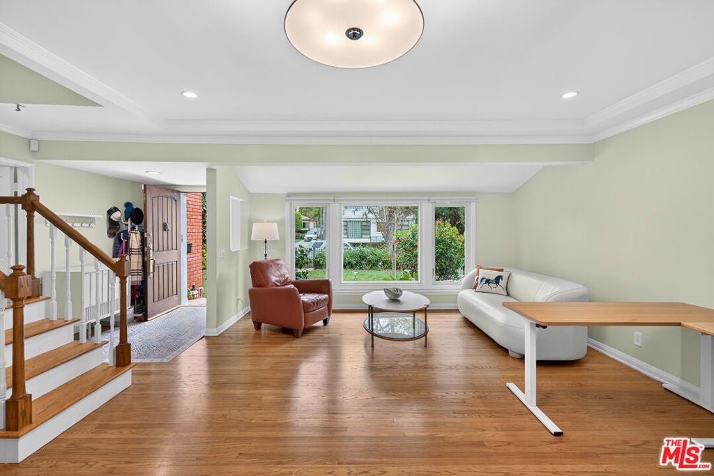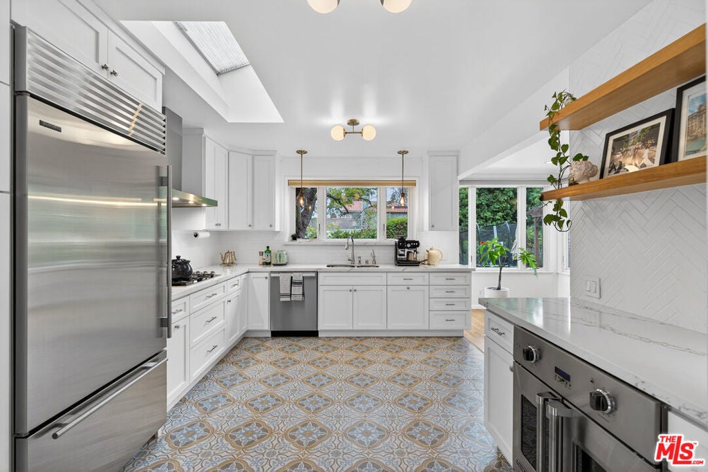 Located on a quiet, tree-lined street north of Montana Avenue, 434 21st Place is a beautifully updated 4-bedroom, 3-bath home offering 2,560 square feet of inviting, light-filled living space. The inviting living room features rich hardwood floors, classic crown molding, a fireplace, and expansive picture windows that frame lush greenery and flood the space with natural light. Its open layout flows effortlessly into the breakfast area and kitchen, creating an ideal setting for relaxed daily living and seamless entertaining. Elegant French doors lead directly to the backyard retreat, bringing the outdoors in and enhancing the home's sense of indoor-outdoor harmony. The remodeled kitchen is bright, timeless, and designed for both style and function. It showcases crisp white cabinetry, marble countertops, tile flooring, and high-end stainless steel appliances, including a Sub-Zero refrigerator and a Viking double-door oven. A charming breakfast nook overlooks the garden and opens seamlessly to the outdoors, creating a light-filled, airy space that reinforces the home's open and inviting atmosphere. The flexible floor plan features two bedrooms and bathrooms on the main level, including one with an en-suite bath ideal for guests, extended family, or a home office. A second downstairs bathroom thoughtfully integrates a stackable washer and dryer for added convenience. Upstairs, two additional bedrooms and bathrooms provide privacy and separation, anchored by a spacious primary suite with its own luxurious en-suite bathroom. The backyard is a true retreat beautifully landscaped with mature trees, raised garden beds, and multiple areas for dining and entertaining. A pergola-covered patio sets the stage for al fresco evenings, while a private yard offers space to play, garden, or unwind. Completing this serene outdoor haven, an inviting spa provides the perfect spot to relax. Set in the coveted 90402 zip code, moments from Montana Avenue's boutiques, dining, top-rated schools, and the beach, this home blends classic Santa Monica charm with modern comfort in an exceptional location.