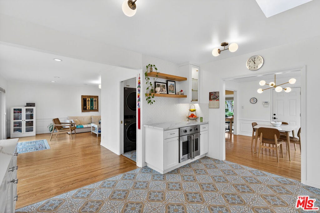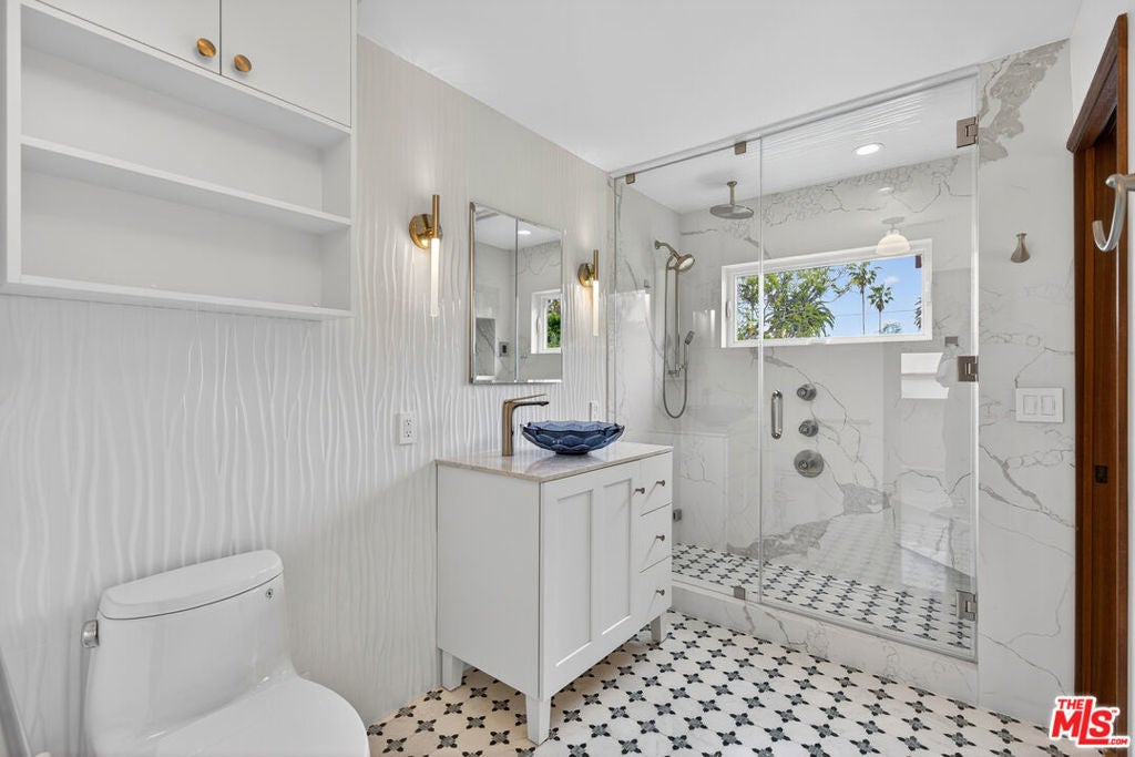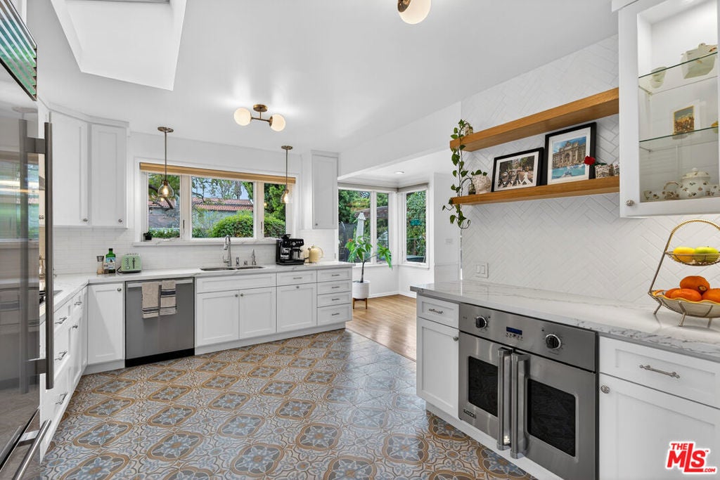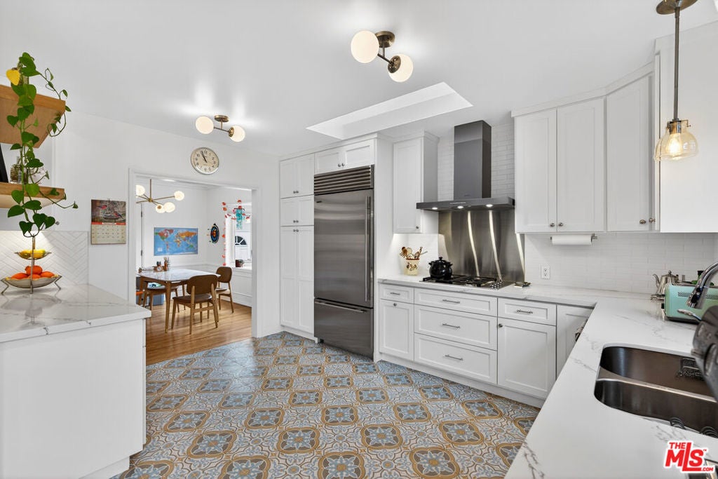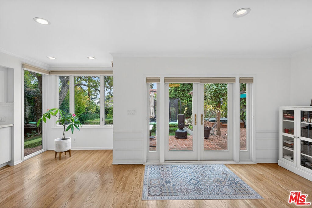 Located on a quiet, tree-lined street north of Montana Avenue, 434 21st Place is a beautifully updated 4-bedroom, 3-bath home offering 2,560 square feet of inviting, light-filled living space. The inviting living room features rich hardwood floors, classic crown molding, a fireplace, and expansive picture windows that frame lush greenery and flood the space with natural light. Its open layout flows effortlessly into the breakfast area and kitchen, creating an ideal setting for relaxed daily living and seamless entertaining. Elegant French doors lead directly to the backyard retreat, bringing the outdoors in and enhancing the home's sense of indoor-outdoor harmony. The remodeled kitchen is bright, timeless, and designed for both style and function. It showcases crisp white cabinetry, marble countertops, tile flooring, and high-end stainless steel appliances, including a Sub-Zero refrigerator and a Viking double-door oven. A charming breakfast nook overlooks the garden and opens seamlessly to the outdoors, creating a light-filled, airy space that reinforces the home's open and inviting atmosphere. The flexible floor plan features two bedrooms and bathrooms on the main level, including one with an en-suite bath ideal for guests, extended family, or a home office. A second downstairs bathroom thoughtfully integrates a stackable washer and dryer for added convenience. Upstairs, two additional bedrooms and bathrooms provide privacy and separation, anchored by a spacious primary suite with its own luxurious en-suite bathroom. The backyard is a true retreat beautifully landscaped with mature trees, raised garden beds, and multiple areas for dining and entertaining. A pergola-covered patio sets the stage for al fresco evenings, while a private yard offers space to play, garden, or unwind. Completing this serene outdoor haven, an inviting spa provides the perfect spot to relax. Set in the coveted 90402 zip code, moments from Montana Avenue's boutiques, dining, top-rated schools, and the beach, this home blends classic Santa Monica charm with modern comfort in an exceptional location.