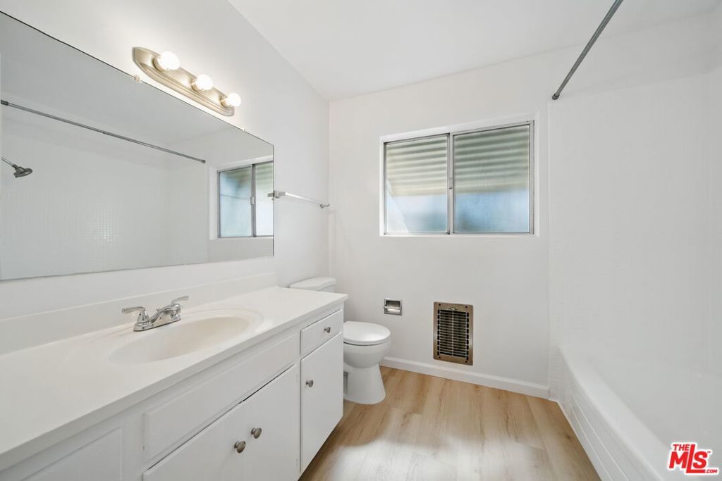 TOP FLOOR one bedroom remodeled unit in a well maintained secured open air mid century building with lots of light and a pool. Other features include AC, lots of storage, new wood vinyl floors throughout, an outdoor patio and one assigned covered parking spot that is gated. Community laundry on-site. PET FRIENDLY.