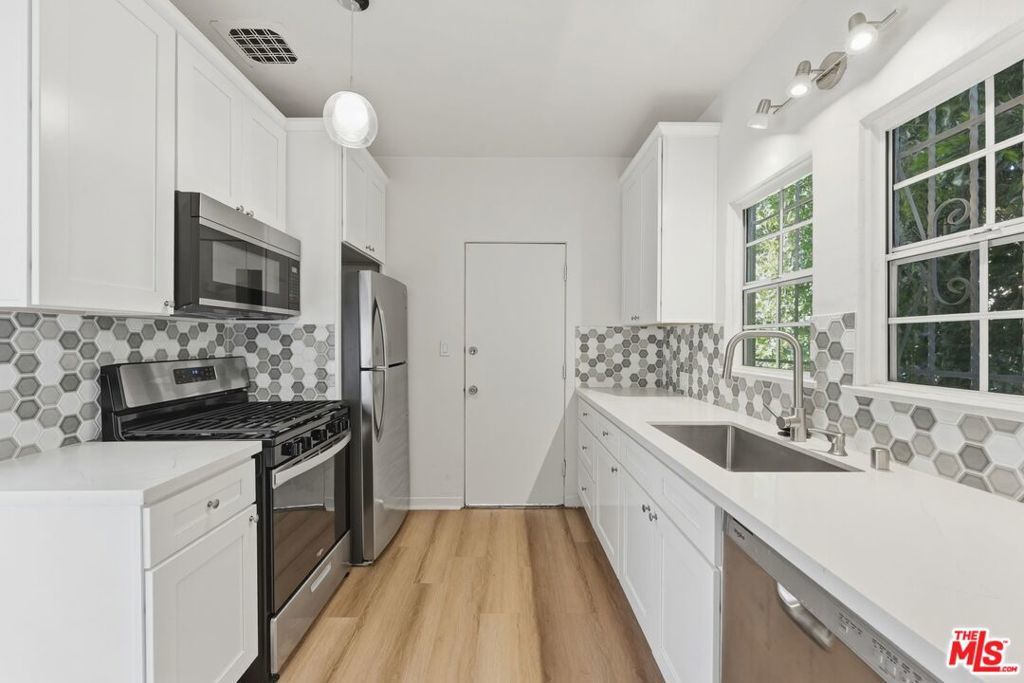 Recently restored and full of character, this charming 1930s two-story unit in a duplex beautifully blends vintage appeal with today's modern comforts. Offering 3 spacious bedrooms and 1.5 bathrooms, the home has been thoughtfully updated with central air and heat, brand new flooring, new electrical and plumbing, and a completely redesigned kitchen featuring brand new stainless steel appliances and in-unit washer and dryer. The generous downstairs layout includes a large, inviting living room, bright formal dining area, and a modern kitchen designed for both everyday living and effortless entertaining. Upstairs, you'll find three well-sized bedrooms and a spacious full bath complete with both a tub and shower, creating a comfortable retreat at the end of the day. A private balcony provides the perfect spot for morning coffee or evening relaxation. The gated entrance and private fenced courtyard add both charm and privacy, while garage parking is included for added convenience. Ideally located just minutes from Downtown Los Angeles, approximately seven minutes to Culver City, and only 18 minutes to the beaches of Santa Monica, this home offers unbeatable access to the best of the Westside and city living. With easy access to the Interstate 10, commuting is seamless while dining, shopping, and entertainment are always within reach. A rare opportunity to lease a character-rich home in a prime, centrally located neighborhood.