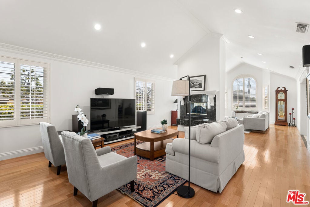 Welcome to this inviting Westchester residence, thoughtfully designed for comfort and effortless everyday living. This single-level home offers a beautifully considered layout that balances openness with privacy. The formal living room, highlighted by an oversized front window that fills the space with natural light, flows seamlessly into the family room, with the two spaces thoughtfully divided by a striking two-sided fireplace. Soaring vaulted ceilings extend across both rooms, creating an airy sense of scale while the shared fireplace adds warmth, character, and architectural interest at the heart of the home. Plantation shutters throughout provide elegant light control and privacy. The galley kitchen flows seamlessly from the living areas, offering stainless steel appliances, a dishwasher, microwave, refrigerator, and disposal. A cozy dine-in area makes everyday meals feel special, while two sun tubes overhead brighten the space naturally throughout the day. Tile flooring extends from the welcoming foyer, distinguished by an elegant compass-pattern inlay, through the kitchen, creating continuity and polish. This 4-bedroom home includes two ensuite bedrooms positioned on opposite sides for optimal privacy, ideal for guests, multigenerational living, or a home office. The guest suite boasts vaulted ceilings, a walk-in closet, bidet, and Jacuzzi tub/shower. The primary suite is a serene retreat with vaulted ceilings, skylight, fireplace, built-in armoire, and his-and-her walk-in closets. Two additional bedrooms offer flexible space, served by a hallway bath with tub/shower and built-in linen storage. A central courtyard connects multiple rooms, opening to a charming brick patio perfect for outdoor dining and relaxation. The walled-in private backyard offers complete seclusion. Situated on a corner lot, the property includes a detached two-car garage and eco-friendly upgrades including an owned solar system, water softener, and reverse osmosis system.