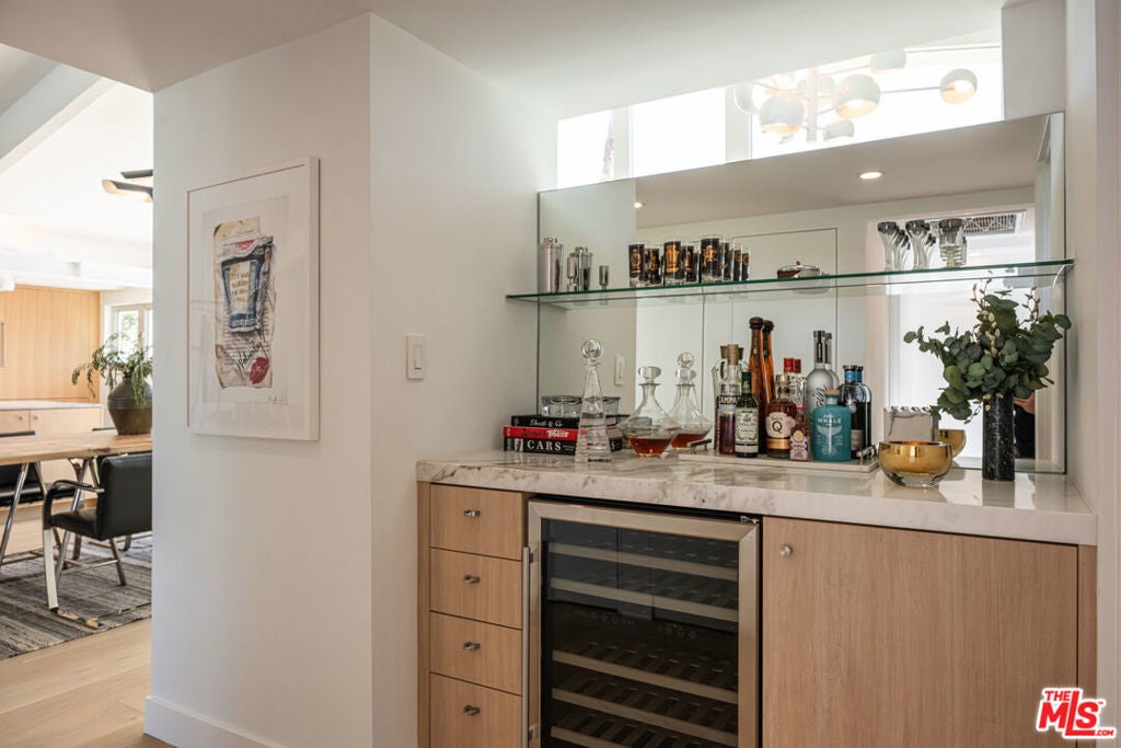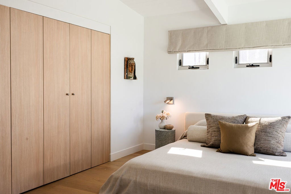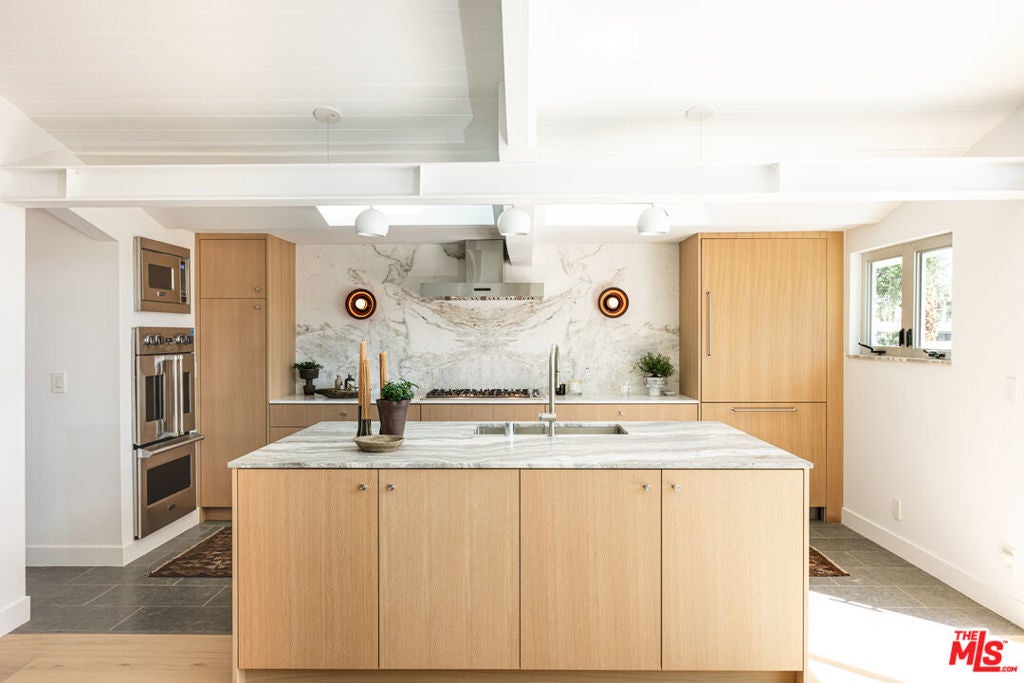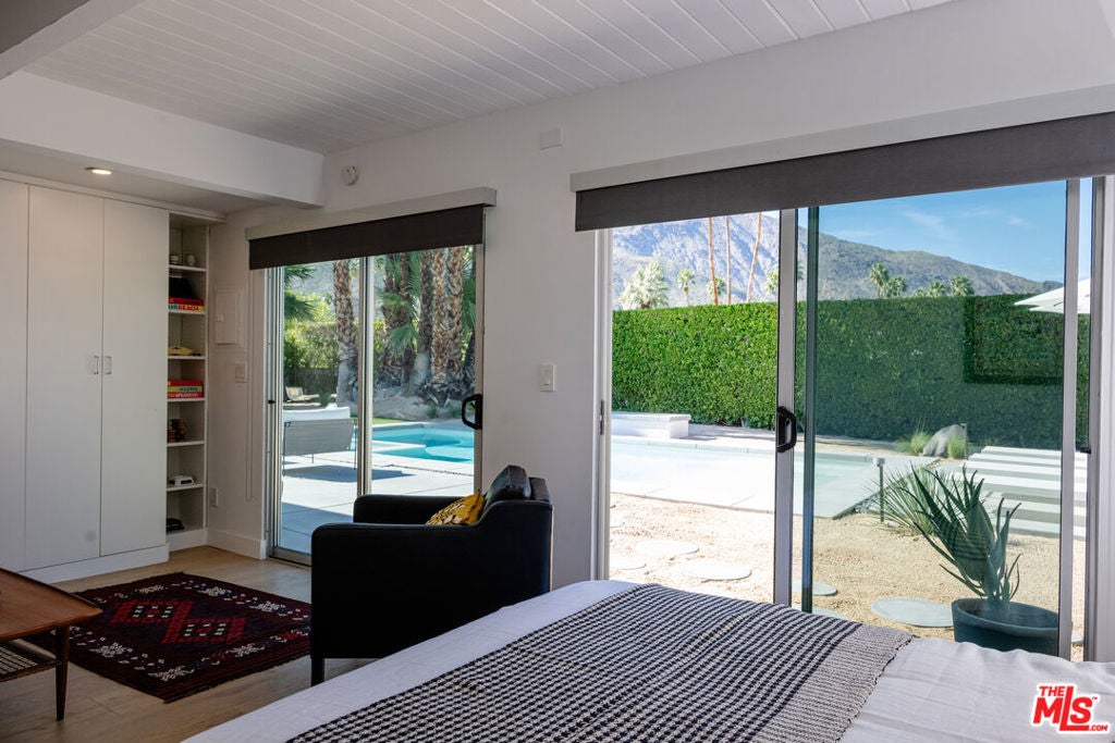 Stunning fully renovated and designed mid-century modern gem in the renowned Twin Palms Neighborhood. Designed by the acclaimed modernist architect William Krisel AIA, built by the legendary Alexander construction company. Situated on a corner lot of a private street that provides stunning panoramic mountain views from front to back. Clean lines, high ceilings with exposed beams and clerestory windows that Krisel was known for, are featured throughout the home, framing the mountains and letting in calming natural light. The open layout interior has been fully reimagined with luxury gourmet chefs' kitchen outfitted with Viking appliances and large island. Beautiful redone bathrooms with high-end fixtures. Custom stonework and natural white oak cabinets and flooring flow throughout the home. Stepping out into the backyard is pure magic. Immersed by the mountains from all angles, lounge areas, a sparkling new sleek modern pool/spa built by Teserra, firepit frames the pool, and built in BBQ. A fully private and peaceful luxury escape with new and mature landscaping perfect for entertaining. Also, a bonus attached casita with backyard entrance, with full bath and small kitchenette/wet bar. The elegance of this property has been brought to life with sleek and elevated design elements creating a captivating atmosphere, making it a truly distinctive property. Rental permits in Twin Palms are still available and have not reached 20% cap. Buyer to confirm. Fee Land.