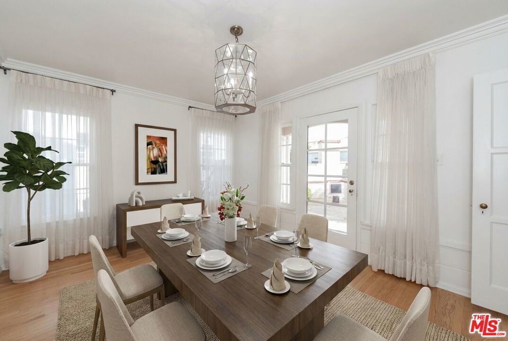 Welcome to this beautiful 2-story home nestled in the desirable neighborhood of Leimert Park. This 2,151 square foot home boasts 3 bedrooms, 3 bathrooms, and an office/library complete with built-in bookshelves, perfect for those working or studying from home. This home offers a perfect blend of charm and comfort. The step-down living room is spacious and features a stone fireplace and elegant crown moldings, creating a warm and inviting atmosphere. Step up to the formal dining room, adorned with a glass paned door, providing a seamless transition to the backyard patio, creating an ideal space for entertaining guests. The kitchen boasts a perfect blend of style and functionality. The white upper cabinets and dark gray lower cabinets create a modern and sleek look, complemented by the stainless-steel sink and appliances. With a double oven and recessed lights, this kitchen is perfect for hosting dinner parties or simply preparing a delicious meal. Off of the kitchen is a separate, quaint breakfast nook with shutters and insets providing a perfect spot for enjoying morning coffee or casual meals. Upstairs, you'll find all the bedrooms, ensuring privacy and tranquility. The primary bedroom's en-suite is open with a separate tub and shower. One of the bedrooms offers access to a rooftop deck, where you can relax and bask in the sun. This home features beautiful hardwood floors throughout, adding a touch of elegance to every room. The backyard patio is the complete with a brick pit, and is an ideal space for enjoying outdoor relaxation. The detached 2-car garage provides ample parking and additional storage. The washer and dryer are housed in a separate room off the garage. Situated on a tree-lined street, this home is conveniently located close to Culver City, LAX, Beverly Hills & USC. Metro rail transportation, offers easy access to Downtown Los Angeles, Santa Monica and to LAX. Don't miss the opportunity to live in this Leimert Park gem. Come be the newest neighbor! (Some photos have been virtually staged)