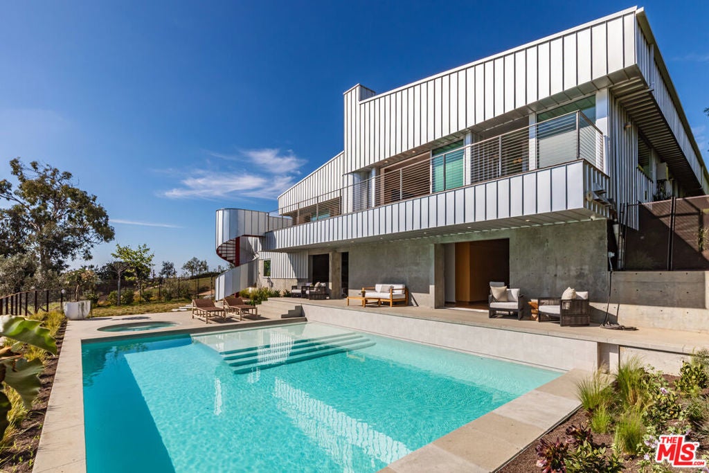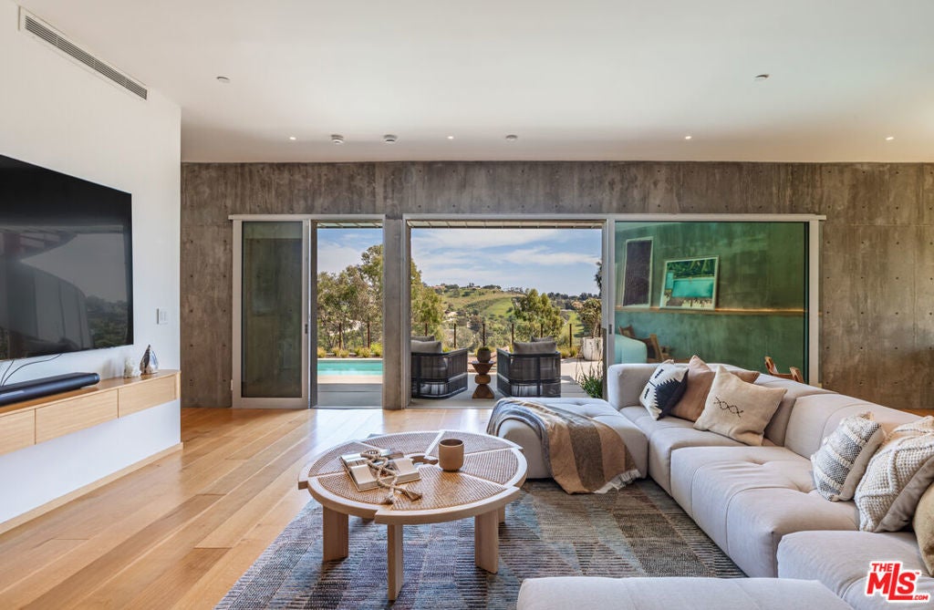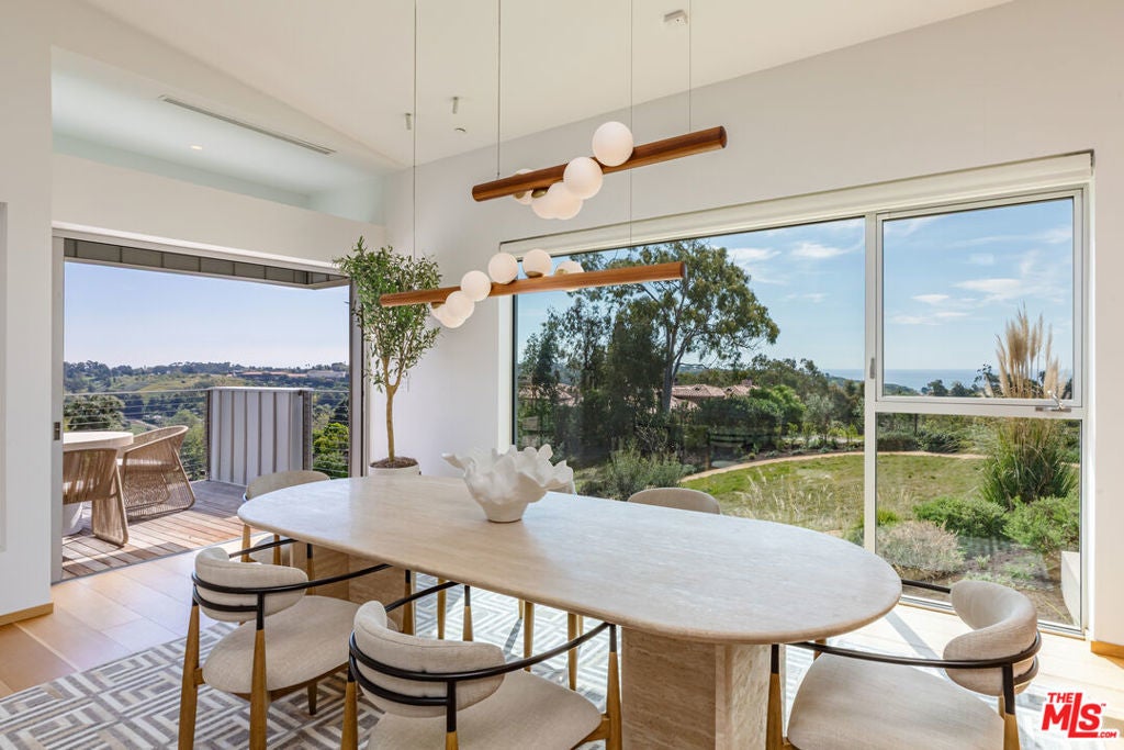 Nestled atop a serene knoll at the end of a private cul-de-sac, this striking 2023 architectural masterpiece designed by the renowned firm PRO commands breathtaking ocean and Bonsall Canyon views from nearly every room. Spanning two legal parcels totaling approximately 2 acres, this gated retreat offers rare privacy and space in one of Malibu's most coveted enclaves. Seamless contemporary elegance defines the interiors, where warm oak, luxurious marble, and exquisite European fixtures and lighting create an inviting yet sophisticated ambiance. A state-of-the-art Control4 whole-house system integrates audio, video, and lighting for effortless smart control throughout. The open-concept living and dining areas flow effortlessly onto expansive decks, crafting the ultimate space for effortless entertaining against a backdrop of endless Pacific vistas. The chef's kitchen is a true showstopper, boasting top-tier appliances, a massive marble center island, and direct access to a heated, dine-in atrium that extends the living experience outdoors year-round. Walls of glass flood the home with natural light, blurring the lines between indoors and the captivating coastal landscape. Step outside to discover a private, resort-style saltwater swimming pool and spa enveloped in lush xeriscape and native plantings that celebrate Malibu's natural beauty. A whole-house water filtration system ensures pristine water quality indoors and out, while the property's natural gas whole-house generator provides unmatched reliability and peace of mind. An oversized garage opens conveniently to the rear yard, complete with an outdoor shower for post-beach rinses. Perfectly positioned, this exceptional property is within easy walking distance to Zuma Beach and the scenic Zuma Ridge hiking trails, with a quick drive to the charming Thorn Family Farm. Gated, private, and profoundly serene yet remarkably connected to Malibu's iconic lifestyle, this is a rare opportunity for the discerning buyer seeking architectural excellence, advanced smart-home technology, resilient infrastructure, and coastal tranquility.