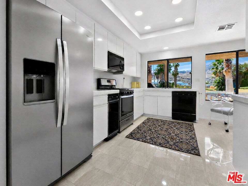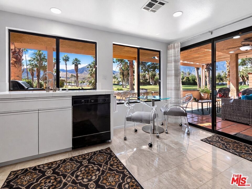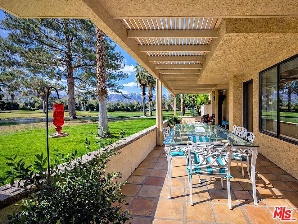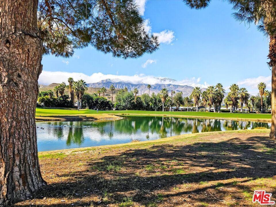 Set lakeside in one of the most desirable perimeter locations within Cathedral Canyon Country Club, this 3-bedroom, 2-bath residence offers 1,826 square feet of light-filled living with uninterrupted mountain, golf course, and water views. Positioned on the outer edge of the community, this is one of only a limited number of homes that does not look into neighboring units or over rooftops, allowing for rare privacy and wide-open sightlines to the surrounding mountains and landscape. The open living and dining areas are enhanced by skylights and expansive glass doors that frame the lush fairways, tranquil lake, and dramatic desert scenery beyond. The refreshed kitchen features crisp white cabinetry, stainless appliances, and a bright breakfast nook with picturesque water and fairway views. The primary suite is a serene retreat with a separated private patio access and a spacious ensuite bath with dual vanities, soaking tub, and separate shower. Two additional bedrooms offer flexible use for guests, office, or den. There is also a large 2-car garage with ample storage space. Recent upgrades include a newer A/C system, skylights, carpeting, and travertine floors that have been professionally stripped and polished to a beautiful high-gloss finish. The bedrooms feature new contemporary plank flooring in warm, natural wood tones. Step outside to an expansive covered patio offering distinct spaces for dining and relaxed lounging, framed by a charming low wall and gate that gently define the space, all overlooking sweeping lakeside and mountain views. Cathedral Canyon Country Club offers multiple pools and spas, golf, tennis, and beautifully maintained grounds, all in a prime location close to shopping, dining, and outdoor recreation. This charming residence, tucked along the lake in a serene setting with pine trees overhead and water birds gliding across the lake, captures the quiet luxury of desert living. Enjoy peaceful morning coffee by the water, sunlit afternoons beneath open skies, and evenings washed in mountain silhouettes. This is a home designed not just to be lived in, but to be experienced. It offers a private retreat where space, light, and landscape come together to create a lasting sense of calm and connection to the natural beauty of the desert.