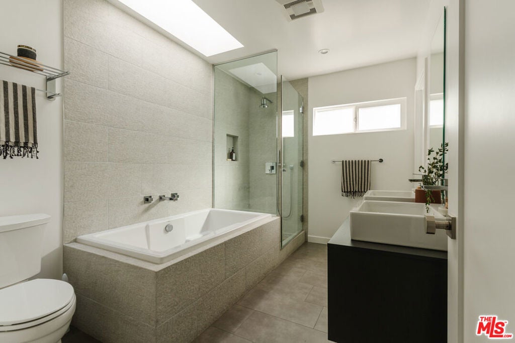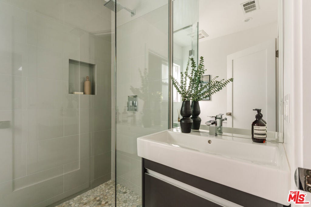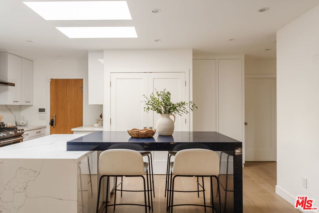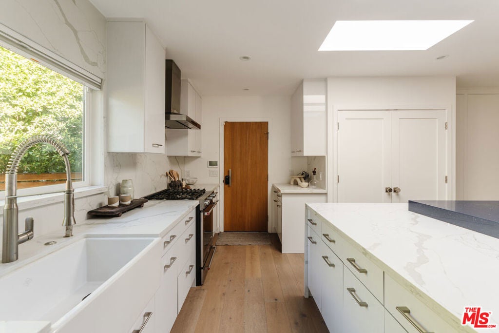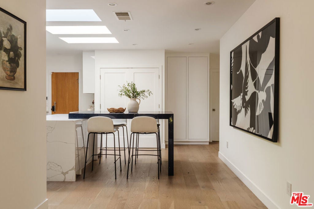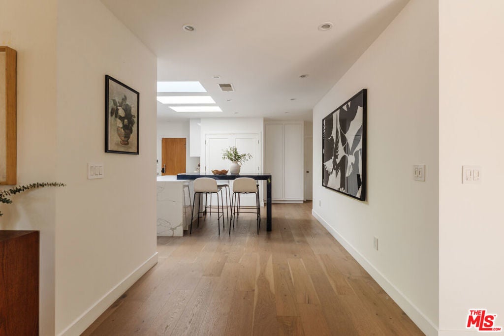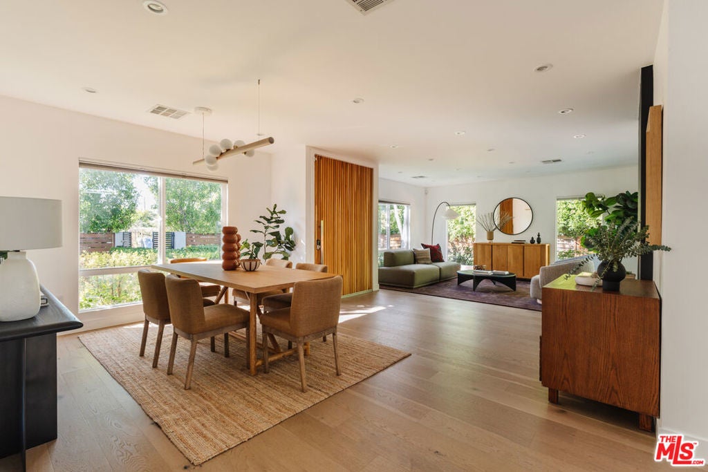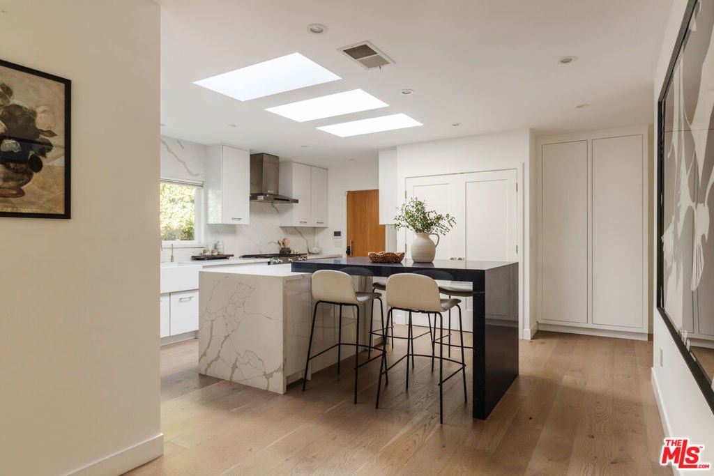 From the moment you arrive, the intentional design makes itself known: mature hedges create a private garden enclave, while the gated entry sets a tone of calm and exclusivity that is hard to find in the city. Step inside and the home opens up with the clean lines and considered proportions of true architectural design. A fireplace in the entry makes an immediate statement, setting a warm and dramatic tone from the moment you cross the threshold.Freshly installed engineered hardwood floors run throughout, lending warmth and continuity to every room. The renovated kitchen is a standout outfitted with stainless steel appliances, stone countertops, and an oversized eat-in island that invites casual dining and easy conversation. A full formal dining room means the home is equally equipped for the dinner party as it is for the weeknight meal. The primary suite is a proper retreat, complete with a large custom walk-in closet, a freestanding soaking tub, and a separate shower. A second bedroom also features its own ensuite bath, while the charming third bedroom is finished with designer wallpaper that gives it a personality all its own and a private patio making it perfect for guest's enjoyment. Custom closets throughout offer ample storage to properly accommodate the modern lifestyle. Outside, multiple areas for entertaining make the most of the Southern California climate spaces that feel as intentional and well-considered as the interior. The location is as considered as the design. Laurel Grove Park is steps away a beloved neighborhood green with shaded trees, open lawn, play areas and a genuine sense of community. Trader Joe's on Laurel Canyon is minutes from your door, and the dining and shopping hotspots of Studio City and Sherman Oaks are a short drive down Ventura Boulevard. When you need to move across the city, the 101 and 170 freeways keep everything within easy reach. Valley Glen continues to attract buyers who want the energy and convenience of the San Fernando Valley with a neighborhood feel that remains genuinely residential. 6152 Saint Clair is undoubtedly one of its finest offerings. Welcome home!