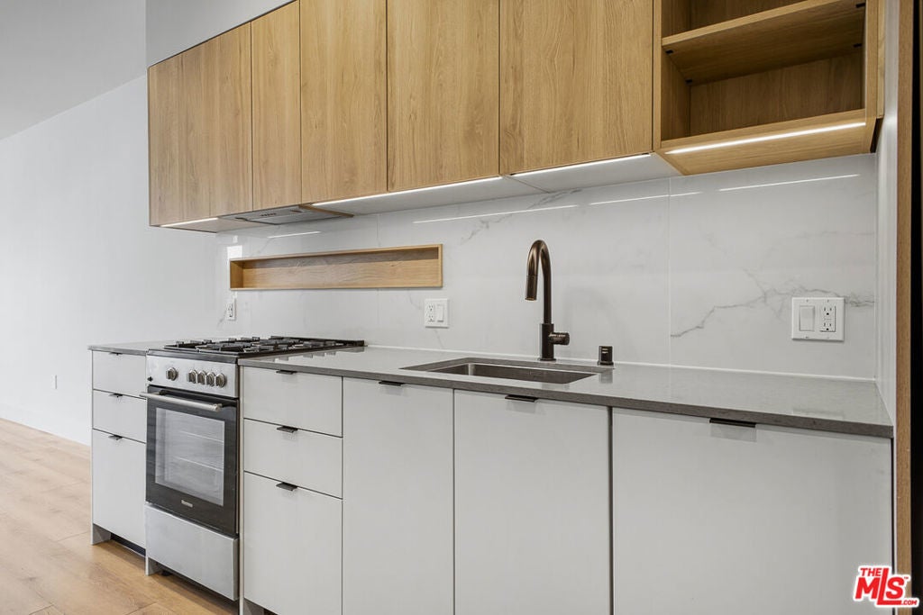 *Pictures are not of the exact unit but same floor plan* Welcome to Archer, located at 12431 Rochester Ave. Residence 410 is a 4th floor unit at 815 square feet. It is East facing with large windows bringing in natural light. This 1 bed + 1.5 bath layout includes a half-bath with a beautiful dark accent wall and assigned modern matte black fixtures. The main bathroom has sliding pocket doors that lead from the bedroom to the walk-in closet which has custom built-in drawers and storage. The bedroom and living room share access to the balcony, which provides a nice flow and extension of the living space. Kitchen is sleek with appliances including a dishwasher and gas stove. Some beautiful details include a built-in spice rack and under-cabinet lighting. Hardwood flooring throughout, stainless steel appliances, in-unit washer/dryer, and smart-home features make for a comfortable and luxury lifestyle. Smart home features include: Nest Thermostats, Lutron Lights, Electronic Window Shades & Keyless Electronic Locks. Property amenities include: Rooftop Lounge, Fitness Center, Conference room, Bike Storage & Smart Intercom. Parking is $150/ month, Pet rent is $50/ month, Internet is $84/month. Contact us today!